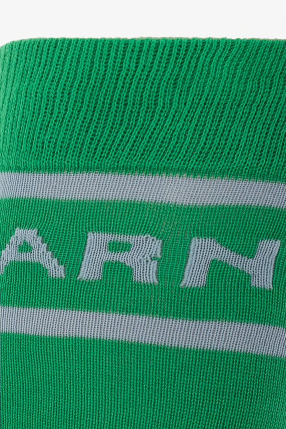 Zielono-granatowo-niebieskie skarpety Marni. Wykonane z bawełny. Ozdobione wzorem z logo. Wykończone ściągaczem.