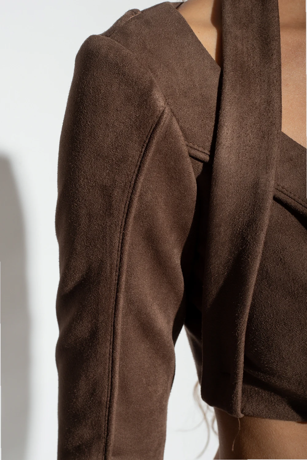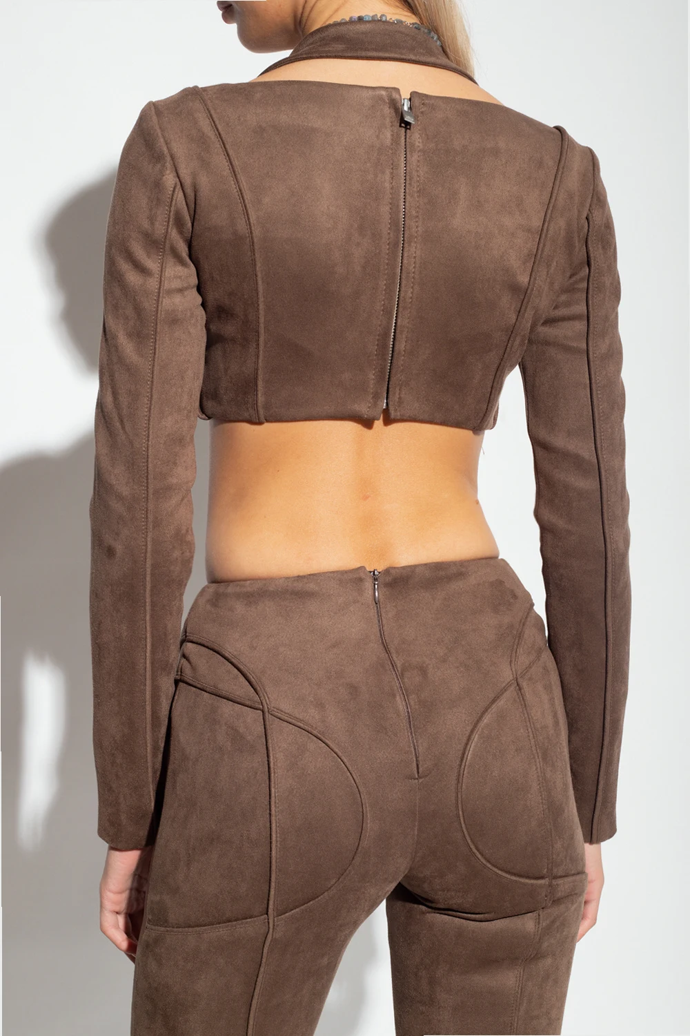 Brązowy top MISBHV. Z tyłu zapinany na zamek. Dekoracyjne przeszycia. Długie rękawy.