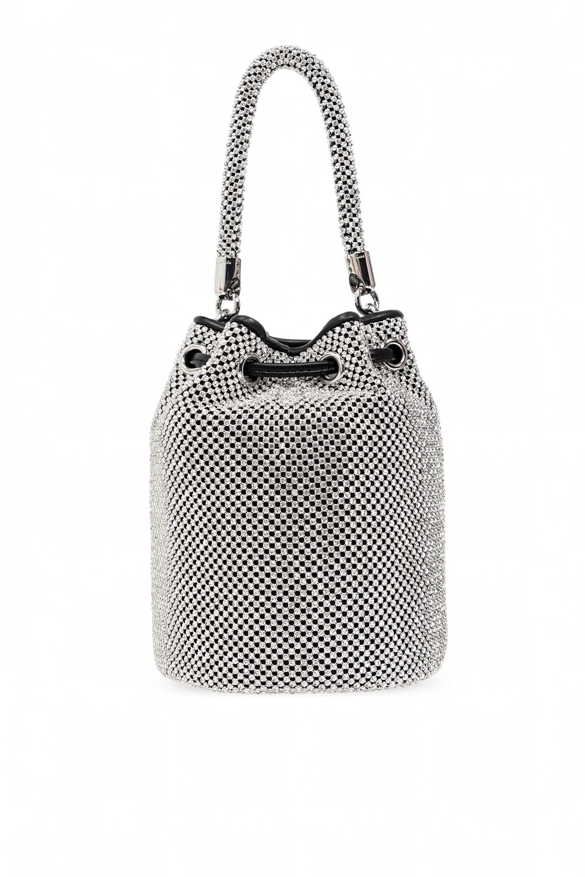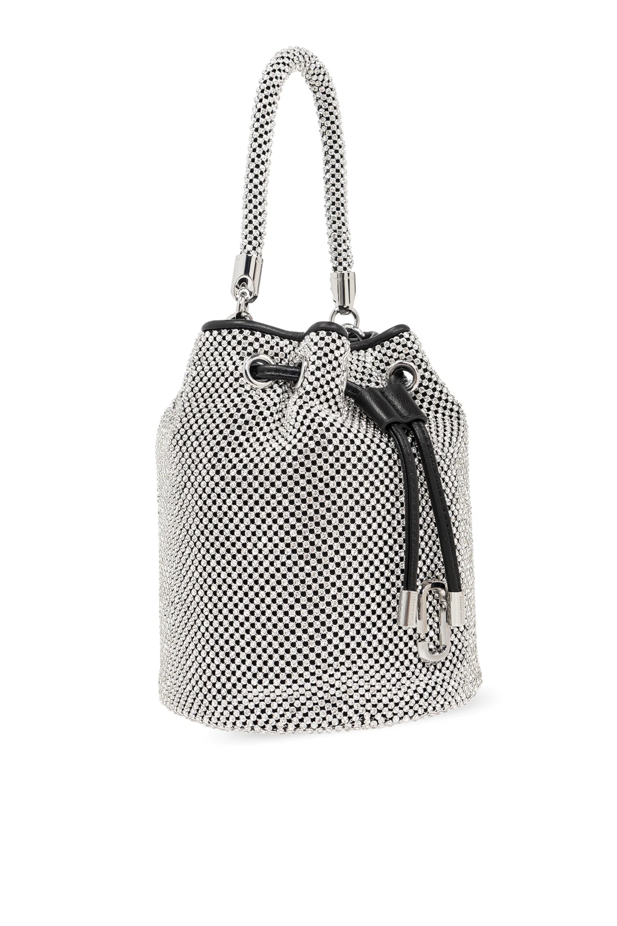 Torba zachwyca formą worka z ściągaczem, wykonaną z wyjątkowego, błyszczącego materiału, który pokryty został kamieniami rhinestone, nadając jej niepowtarzalny blask. Długa rączka pozwala na wygodne noszenie jej na ramieniu, oferując jednocześnie funkcjonalność i wygodę użytkowania. Na froncie torby umieszczono metalowe logo w kształcie litery "J", dodając jej unikatowego charakteru. Metalowe elementy, srebrzyste i lśniące, podkreślają ekskluzywny charakter torby.