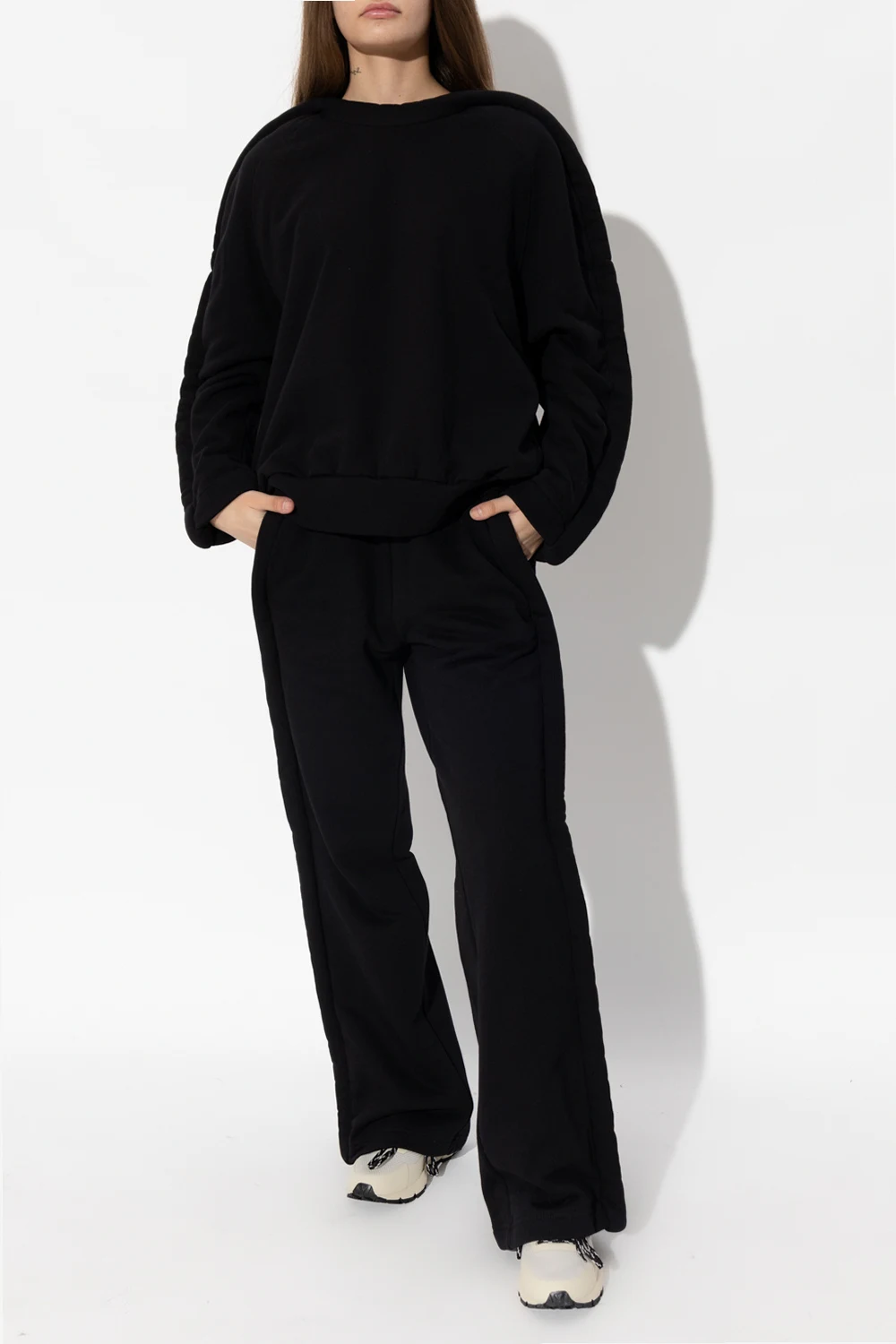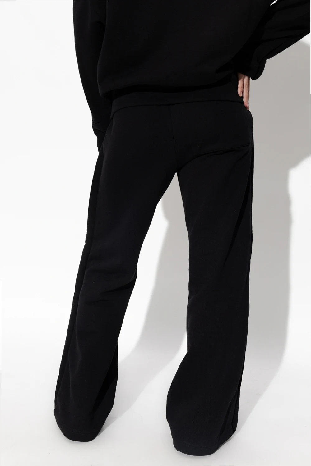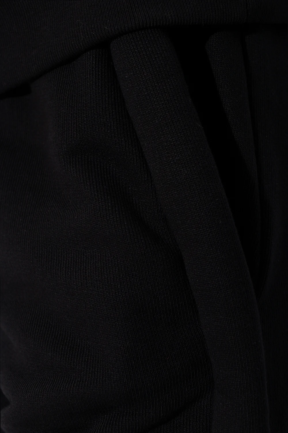 Czarne, bawełniane spodnie dresowe Dries Van Noten. W pasie wszyta guma ściągana trokami. Pikowane lampasy. Długie nogawki o prostym kroju.