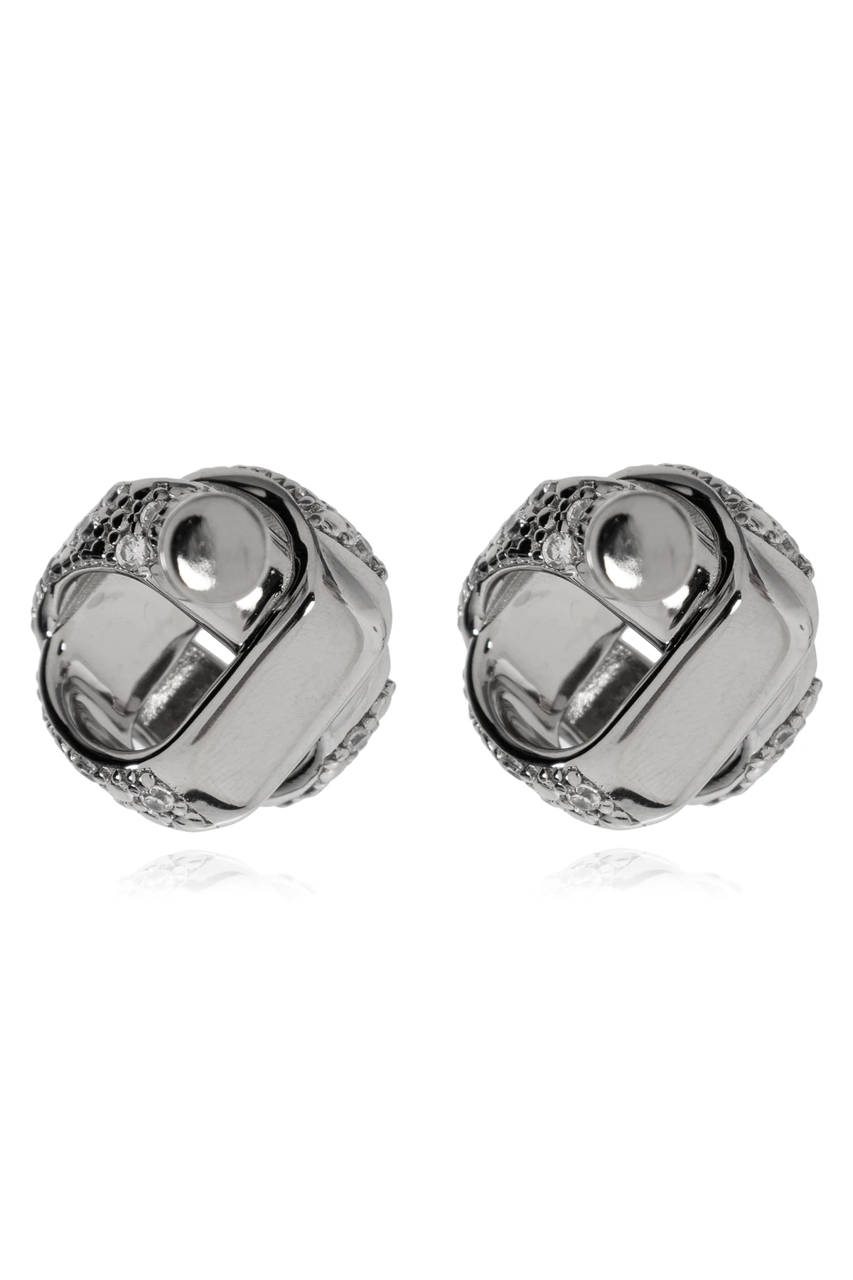 Kolczyki z kryształami marki JIL SANDER to prawdziwe dzieło sztuki jubilerskiej, które łączy w sobie elegancję i luksus . Wykonane z mosiądzu, pokryte srebrem i ozdobione lśniącymi kryształami, stanowią kwintesencję wyrafinowanego stylu. Ich unikalny, kulisty kształt, w którym gładka powierzchnia kontrastuje z blaskiem kryształów, przyciąga wzrok i dodaje wyrazistości każdej stylizacji.