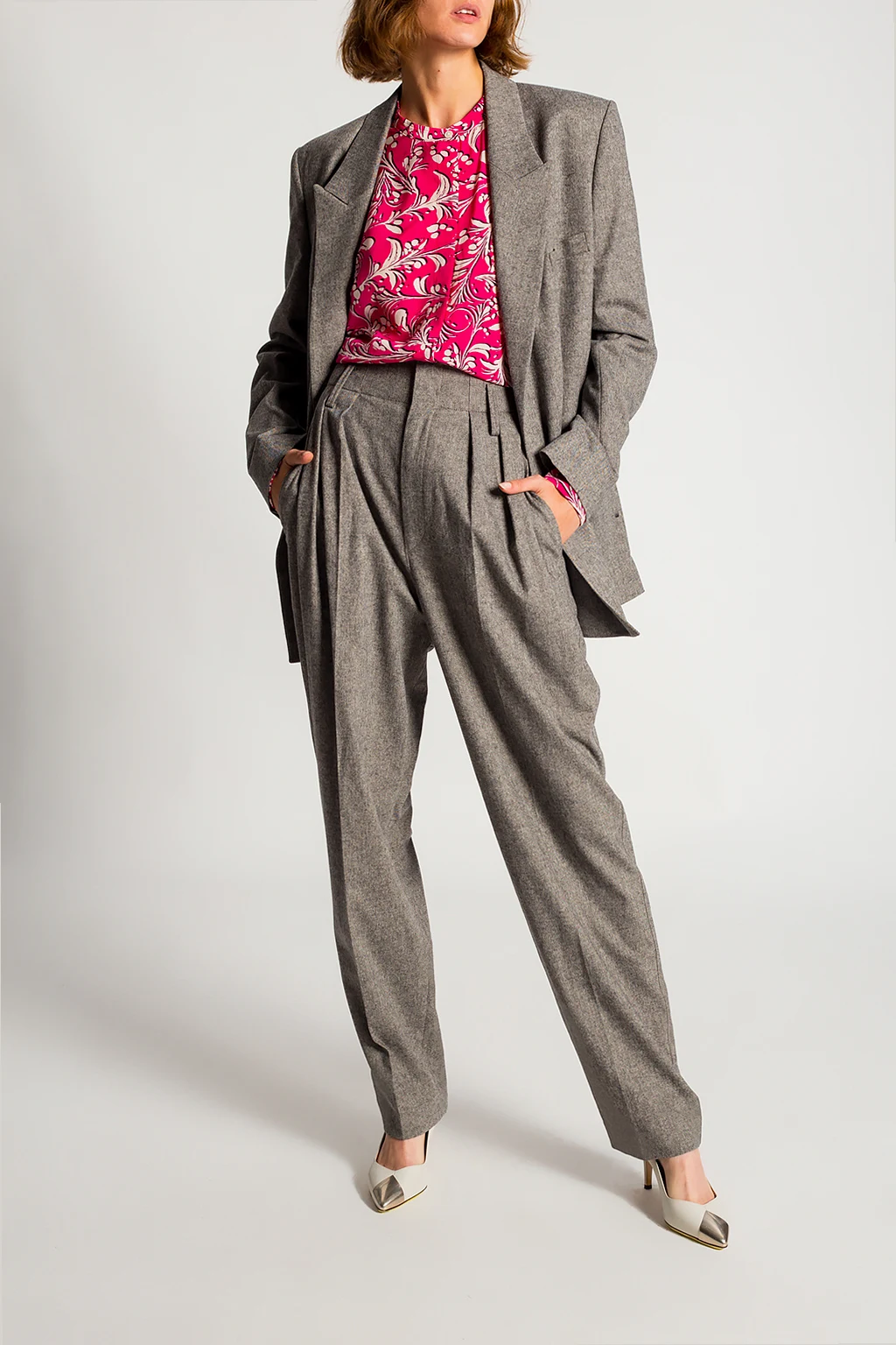 Różowo-biała koszula Isabel Marant Étoile. Ozdobiona wzorem z motywem kwiatowym. Zapinana na guziki z krytą plisą. Długie rękawy.
