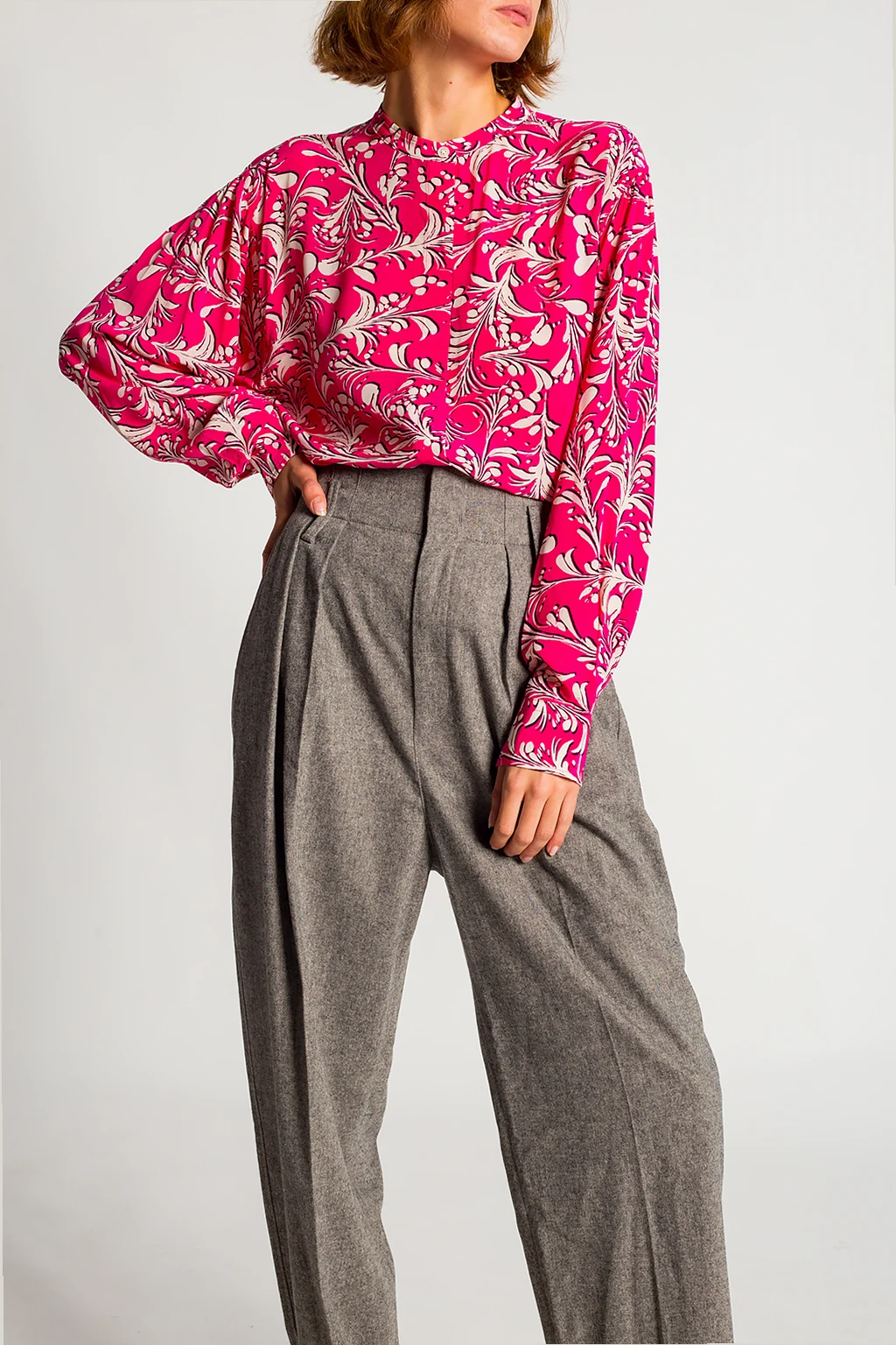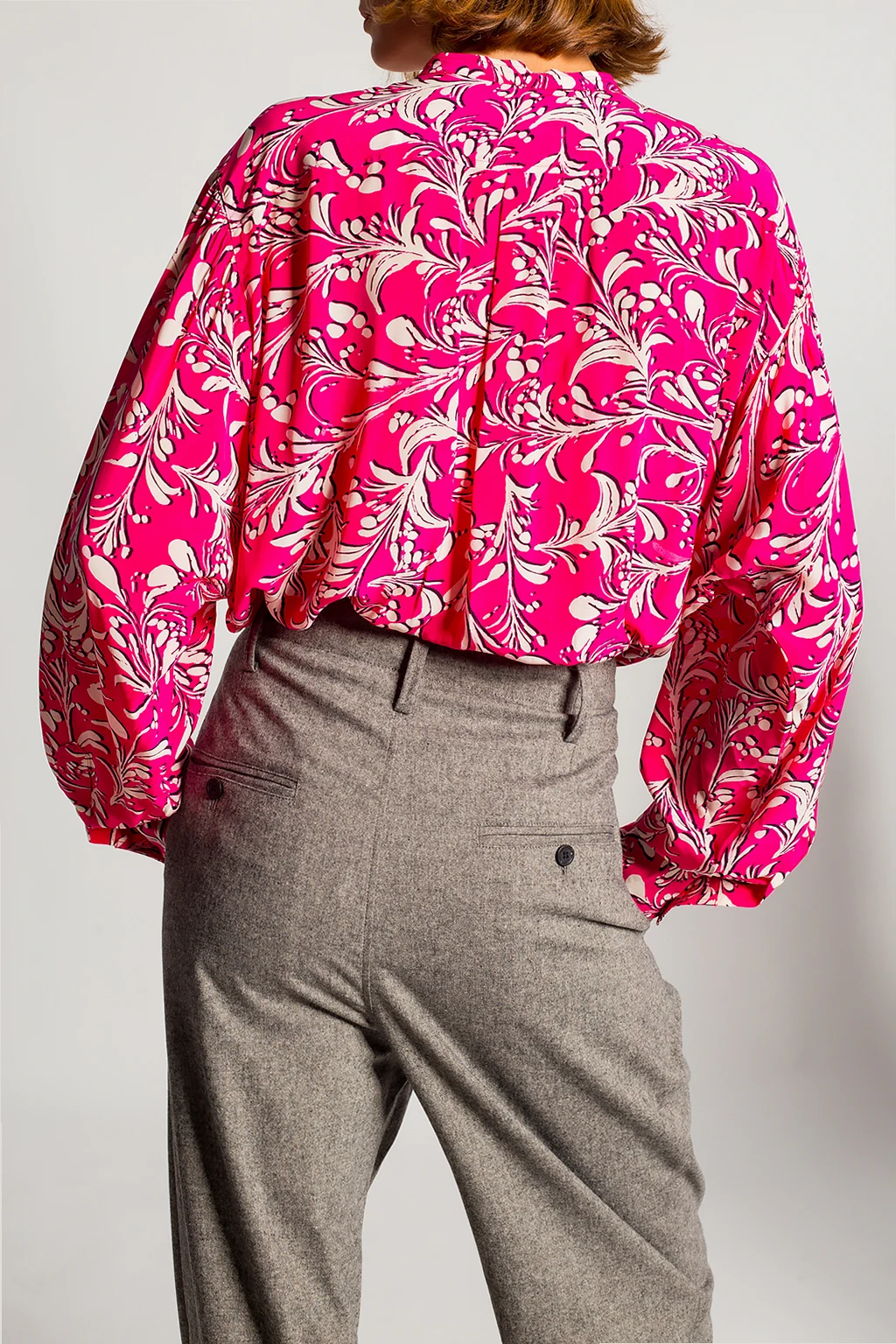 – Kopertowa koszula w prążki z rękawami typu kokon
