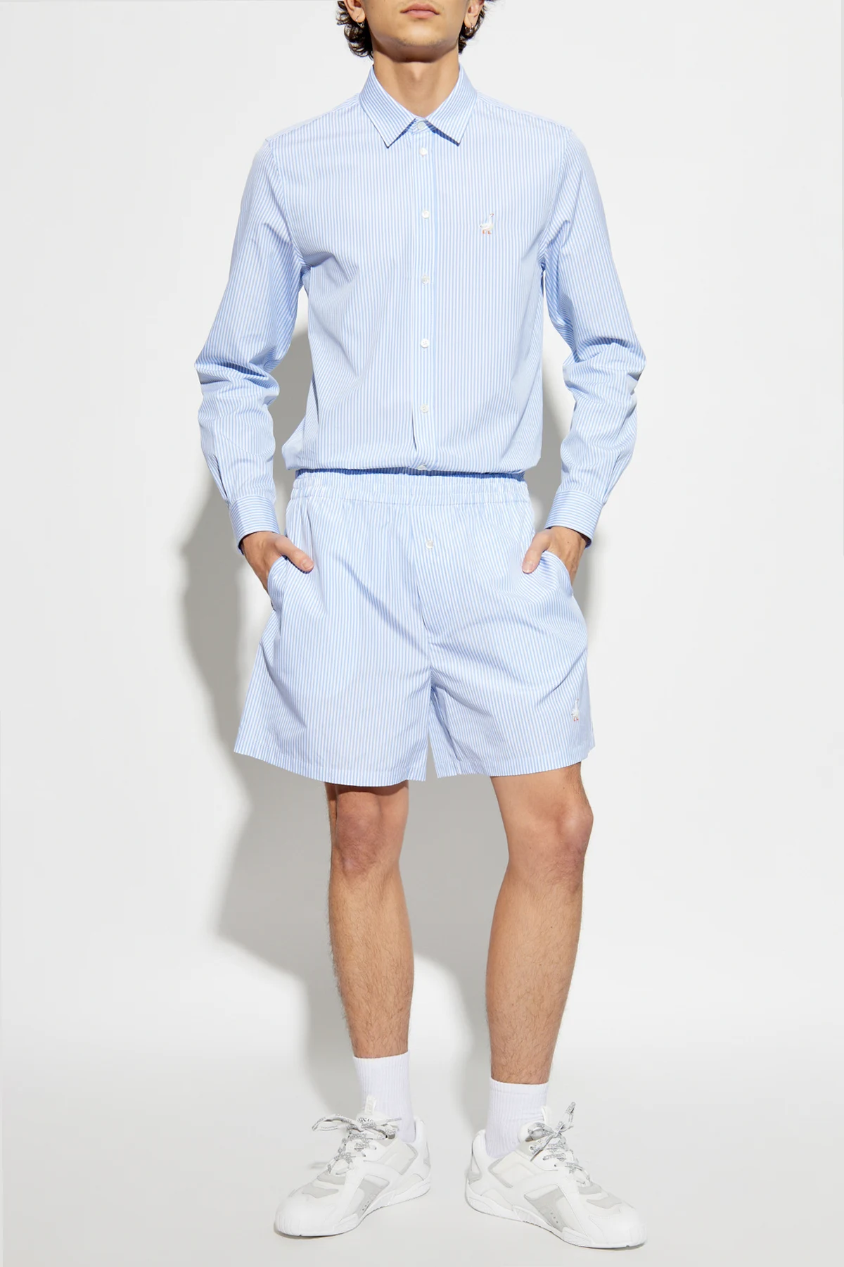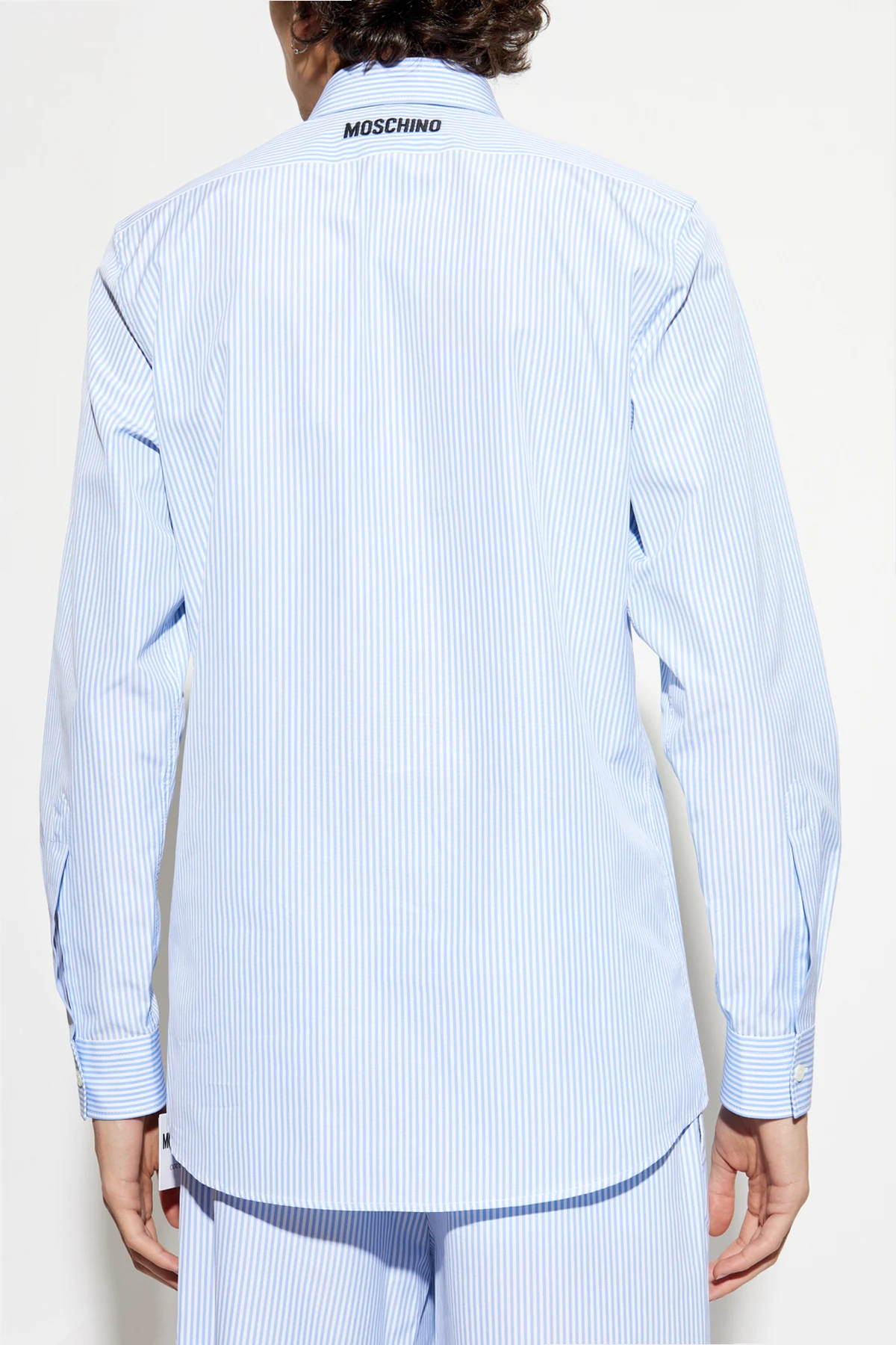 Unikatowym akcentem jest subtelny haft przedstawiający gęś, a także wyhaftowane logo "MOSCHINO" na plecach, które dodaje koszuli wyjątkowego uroku.