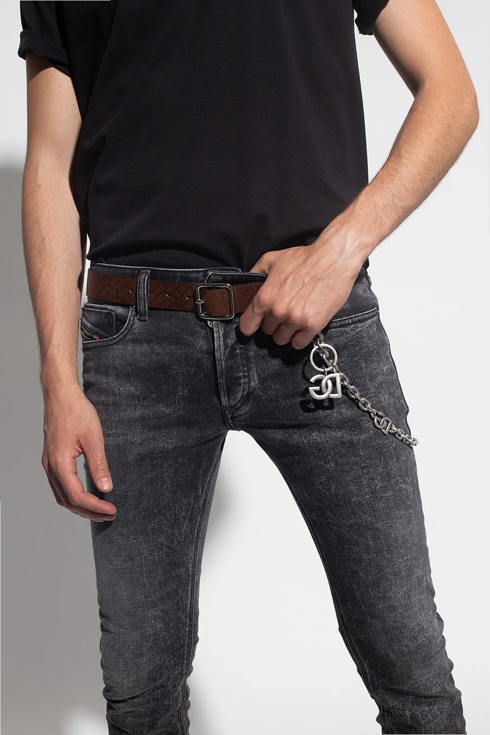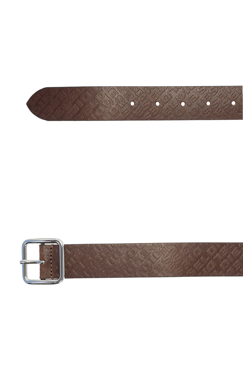 Brązowy pasek, model ‘B-Omni’ Diesel. Wykonany ze skóry krowiej. Ozdobiony wytłoczonym wzorem z logo. Wykończony klamrą w kolorze srebrnym.