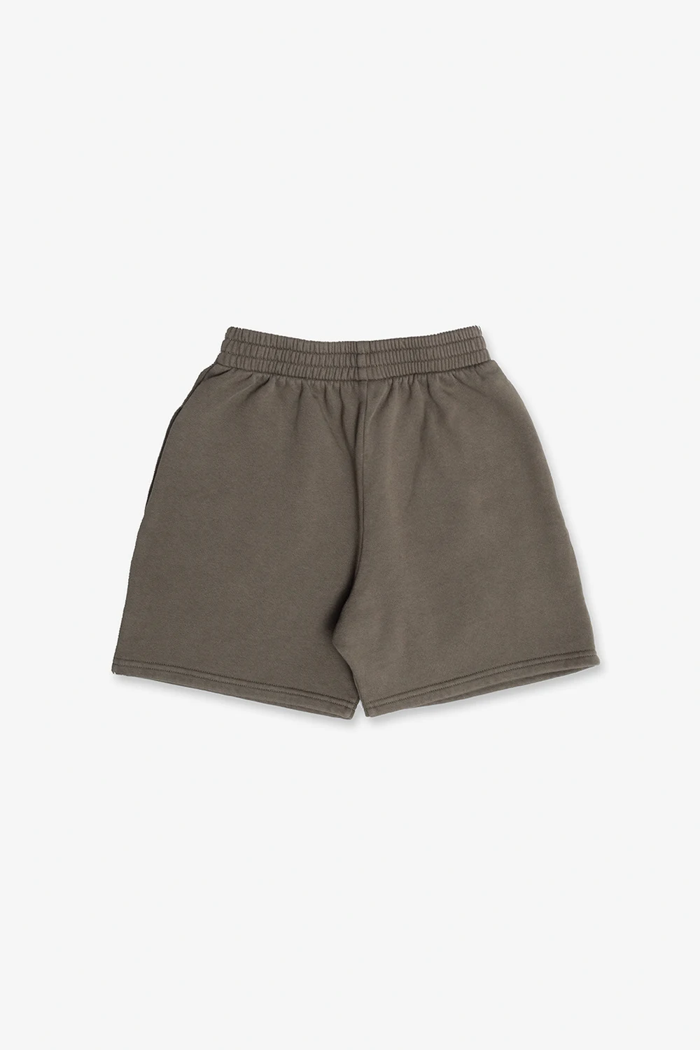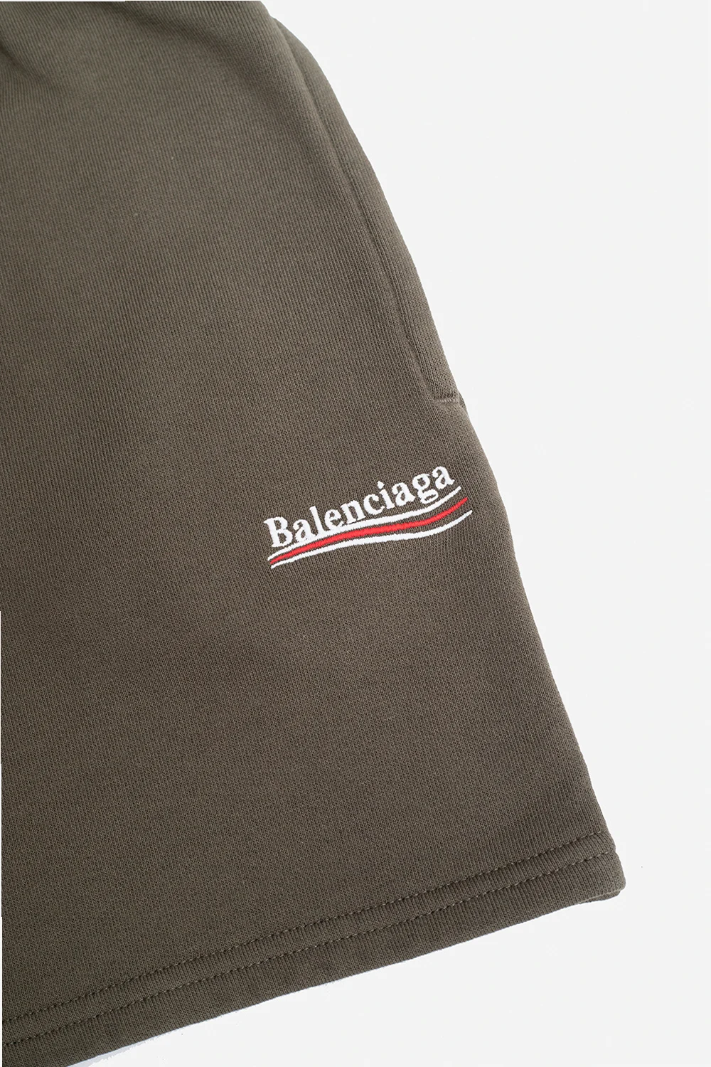 Bawełniane szorty w kolorze khaki Balenciaga Kids. W pasie wszyta guma. Ozdobione wyszytym biało-czerwonym logo. Z przodu dwie kieszenie.