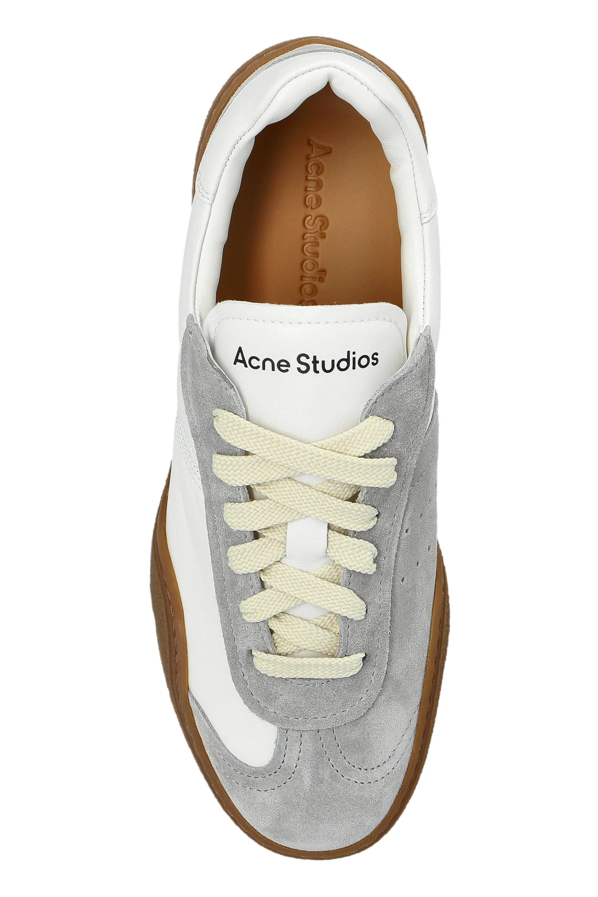 Wykonane z wysokiej jakości skóry licowej i zamszu , buty te gwarantują komfort i trwałość. Gumowa podeszwa w kolorze brązowym zapewnia doskonałą przyczepność, a klasyczne kremowe sznurówki dodają im subtelnej elegancji. Logo "Acne Studios" na języku buta podkreśla ich autentyczność i prestiż.