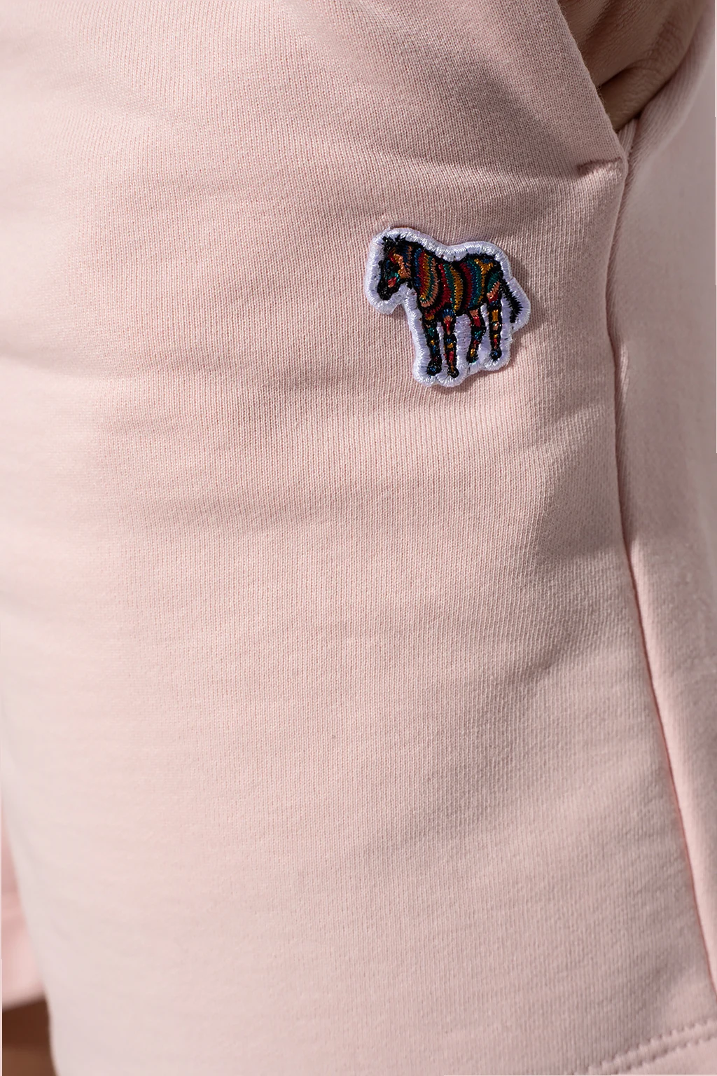 Różowe szorty PS Paul Smith. Wykonane z bawełny organicznej. W pasie wszyta guma. Ściągane kolorowymi trokami. Ozdobione kolorową naszywką z charakterystycznym motywem zebry.