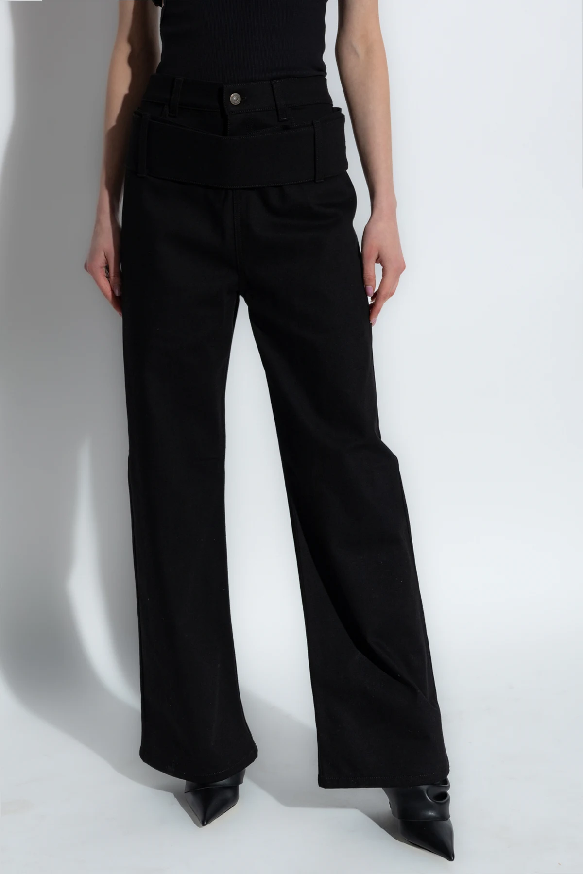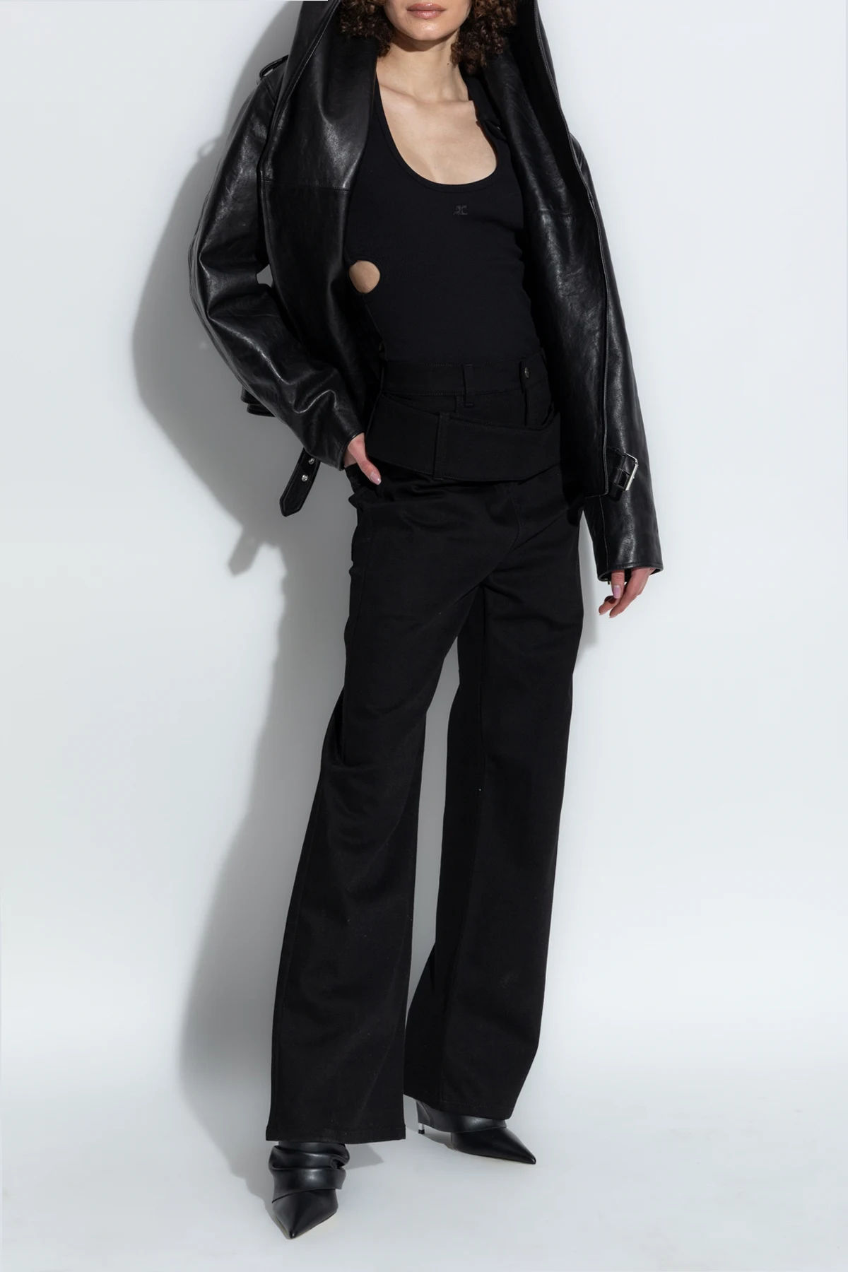 Przedstawiamy Jeansy z rozszerzanymi nogawkami marki Courrèges , które urzekają swoim wysublimowanym stylem i elegancją. Te wyjątkowe spodnie, w dominującej czerni, oferują niepowtarzalny komfort oraz estetykę, doskonale komponując się z różnorodnymi elementami garderoby.