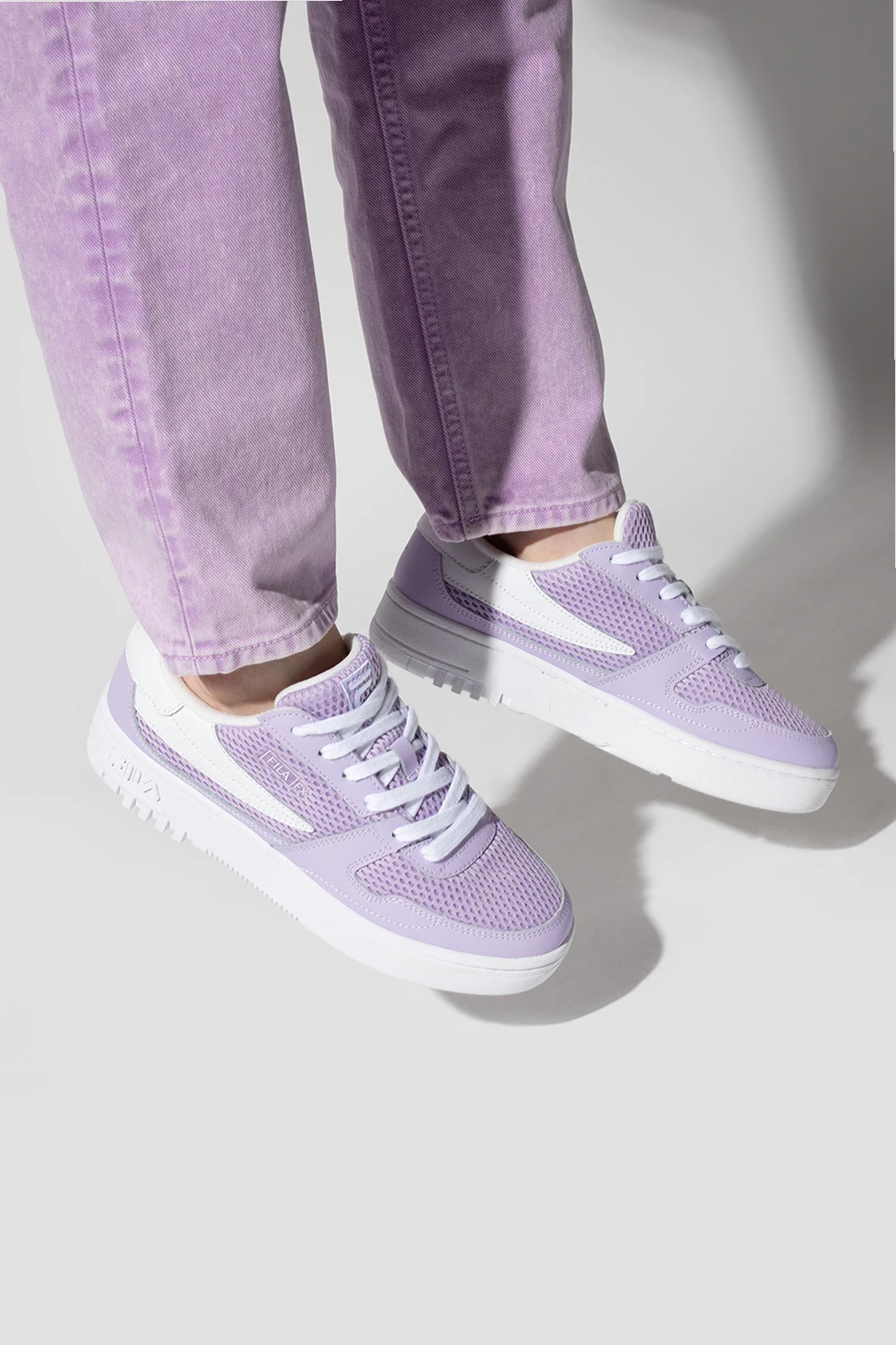 Biało-fioletowe, sznurowane buty sportowe, model ‘FXVentuno’ Fila. Wykończone skórą oraz siatką. Na języku wyszyte logo w kolorze białym. Biała, gumowa podeszwa.