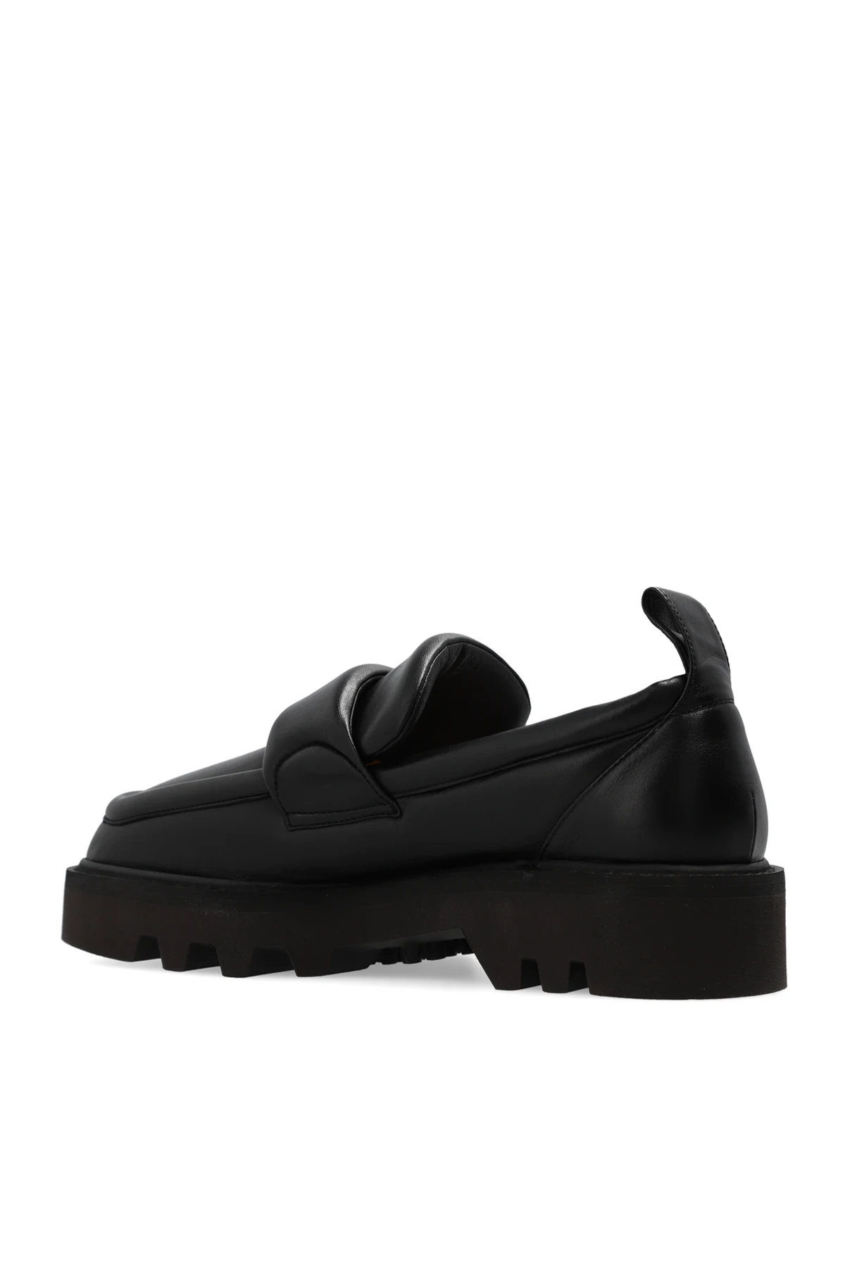 Czarne buty typu ‘loafers’ Dries Van Noten. Wykonane ze skóry. Kwadratowy, ścięty nosek. Ciemnobrązowa, gumowa podeszwa Vibram®.