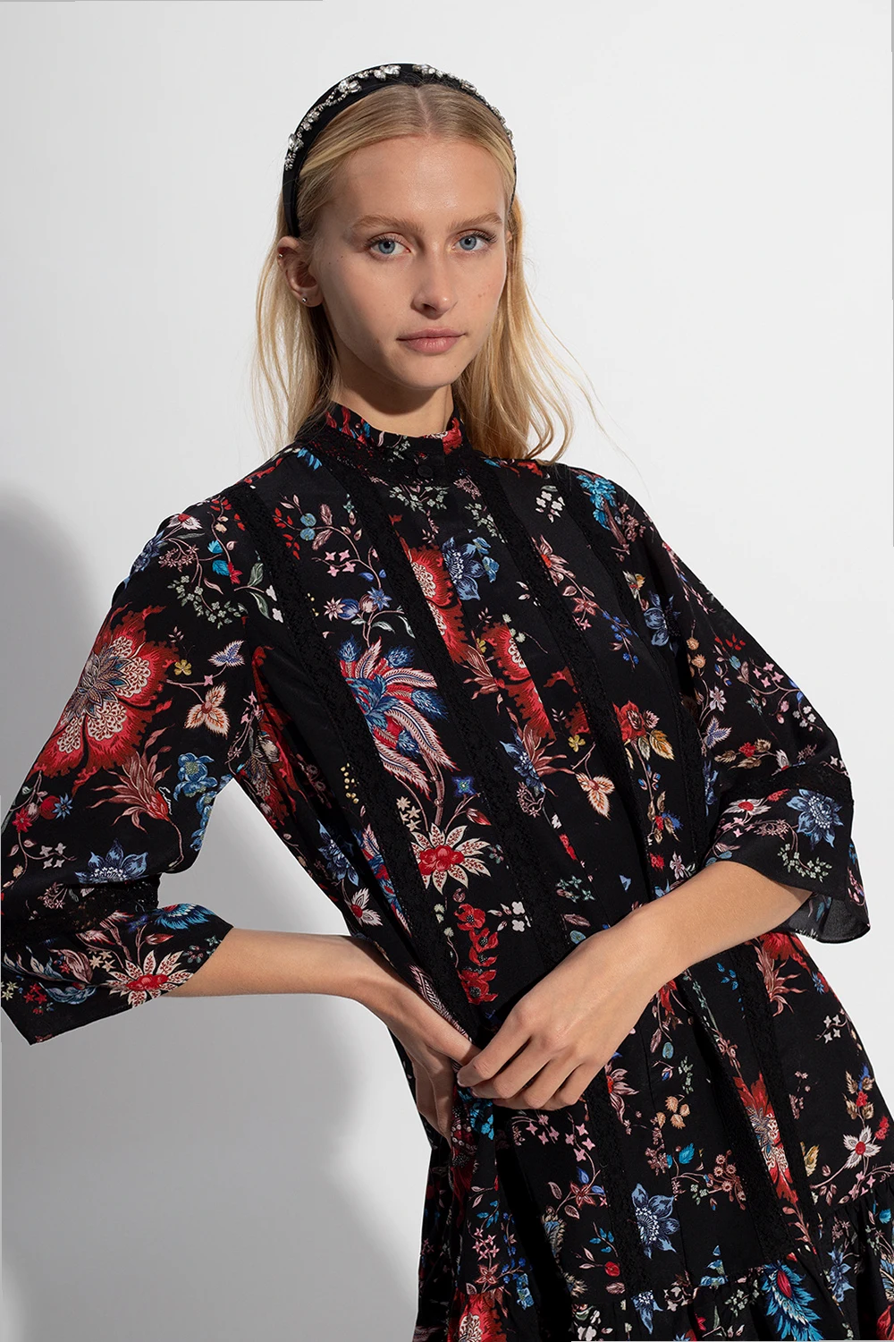 Czarna opaska na głowę Erdem. Ozdobiona aplikacją z kryształowego szkła.