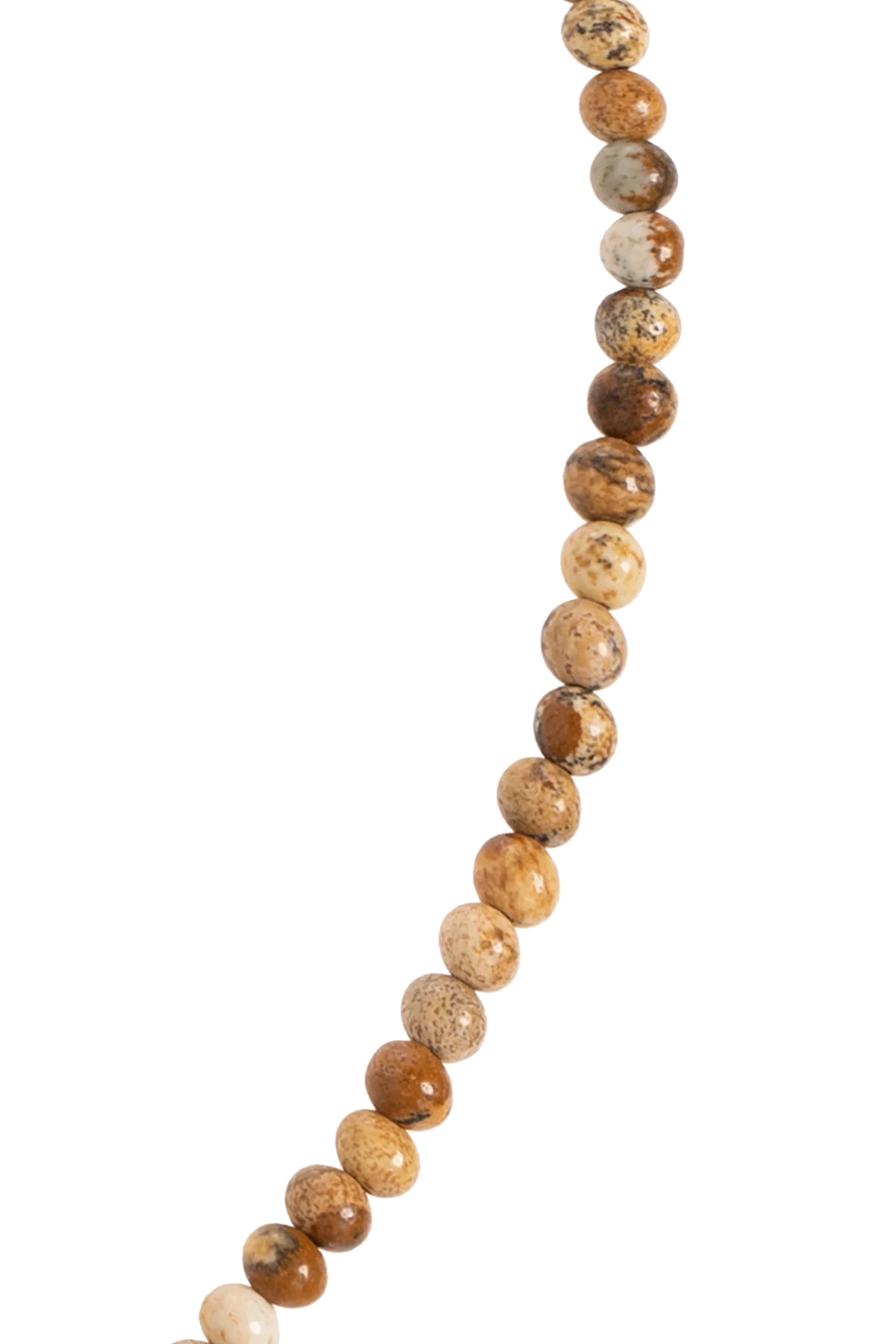 Naszyjnik w kolorze brązowo-beżowym MARANT. Wykonany z mosiądzu w kolorze srebrnym i kamieni. Zapinany na karabińczyk z blaszką z wygrawerowanym logo.