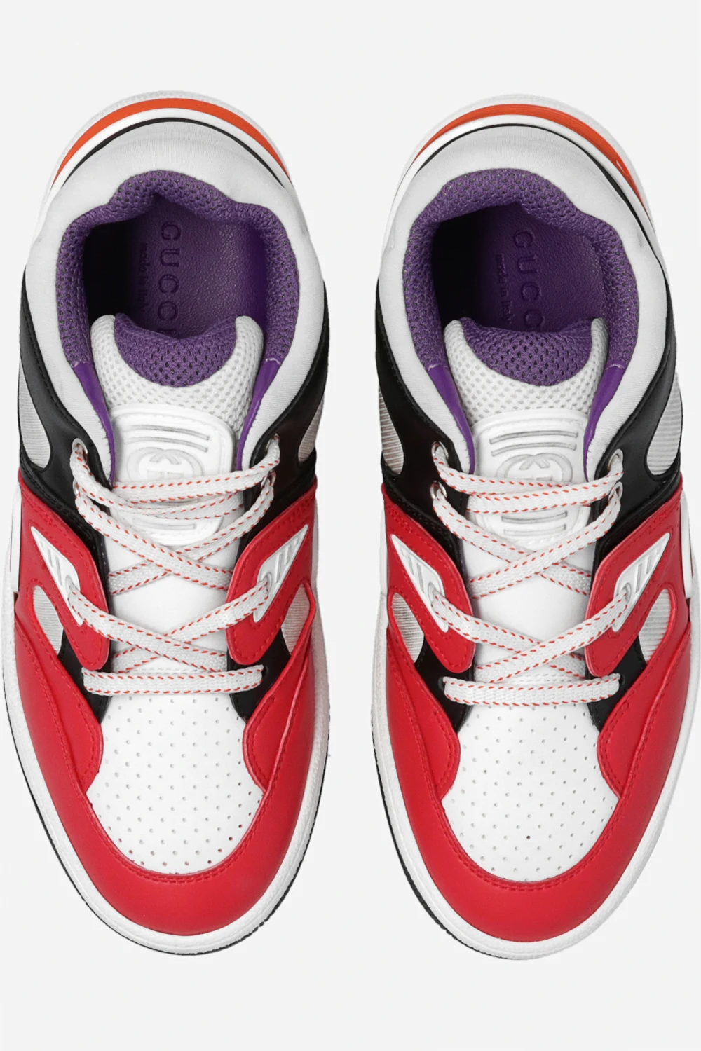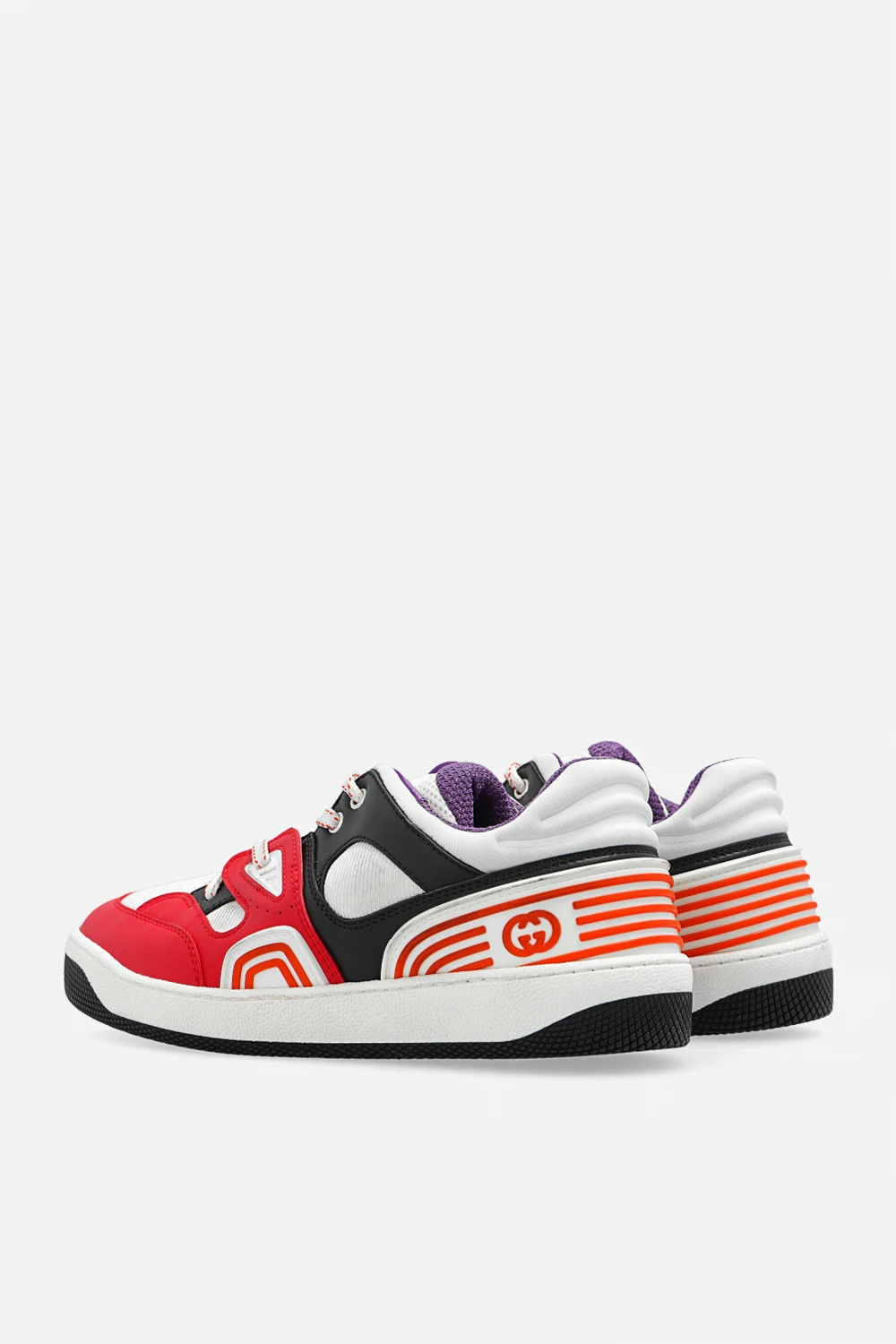 Kolorowe, sznurowane buty sportowe, model ‘Gucci Basket’ Gucci. Wykonane z imitacji skóry i sportowego materiału. Na języku biała aplikacja z logo ‘Interlocking G’. Perforowany przód. Biało-czarna, gumowa podeszwa.