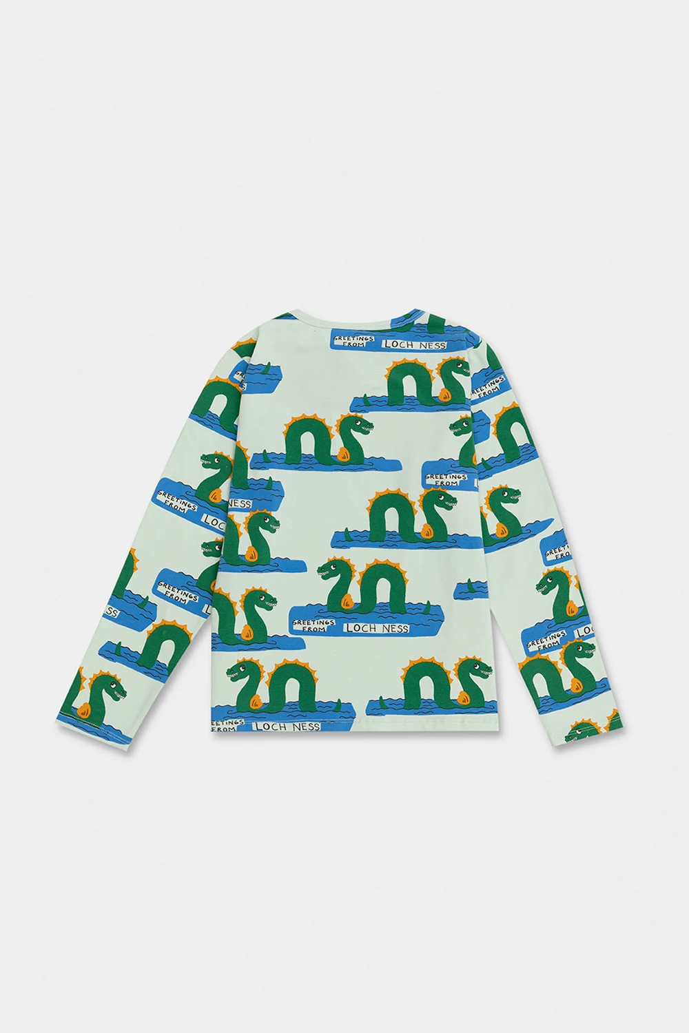 Jasnoniebieski t-shirt z długimi rękawami Mini Rodini. Wykonany z bawełny organicznej z certyfikatem GOTS. Ozdobiony kolorowym nadrukiem. Okrągły dekolt.