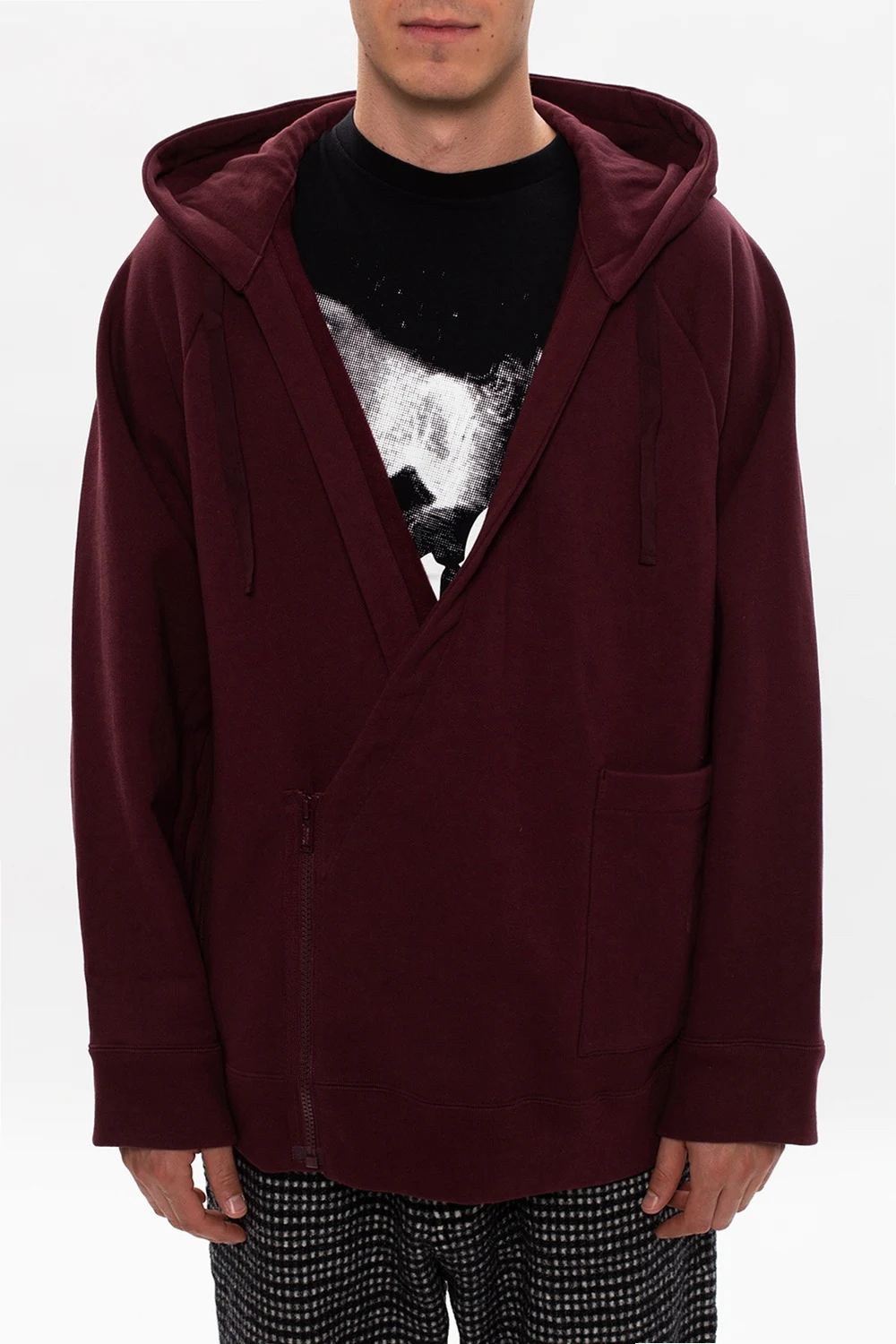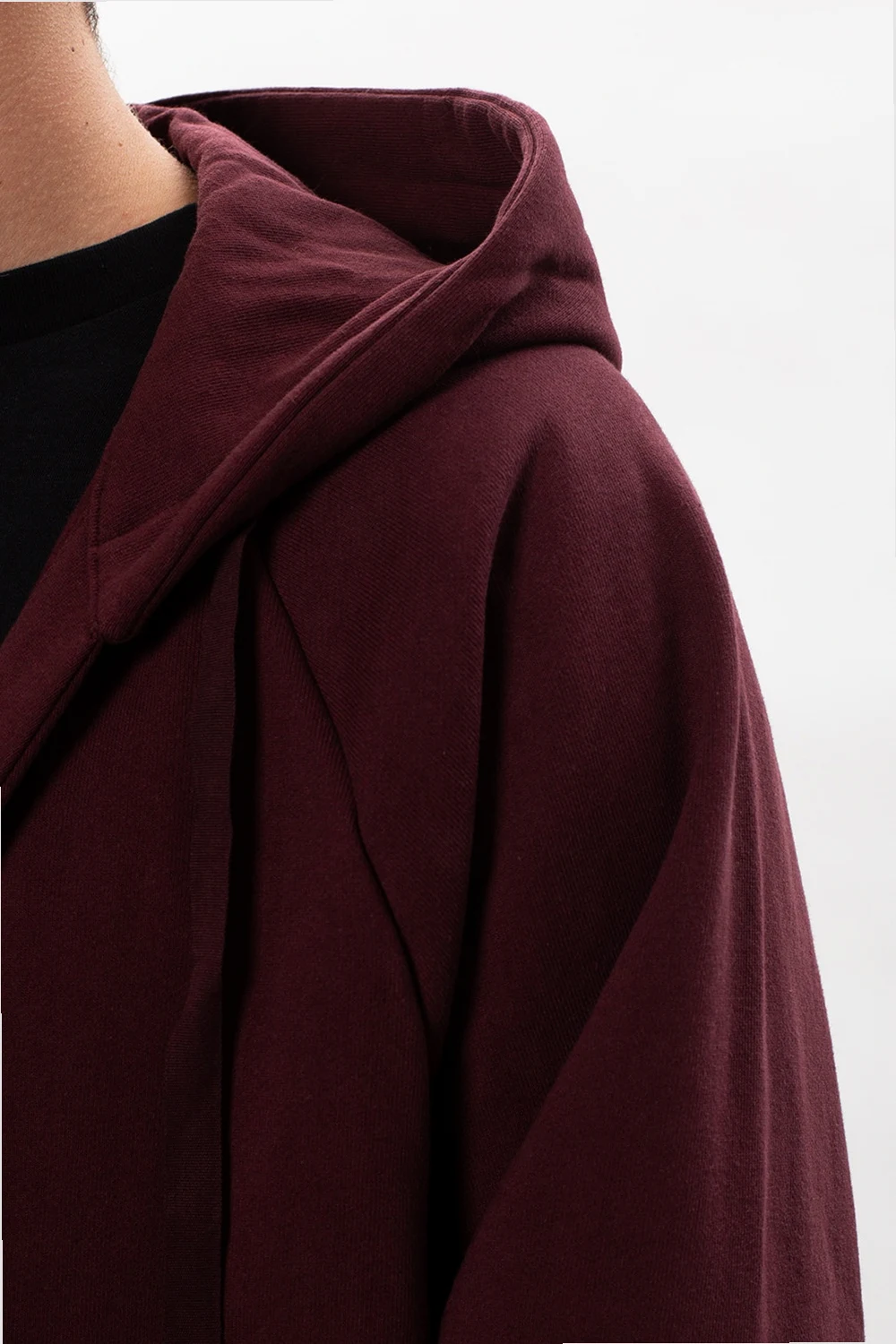 Bordowa bluza Undercover. Wykonana z bawełny. Zapinana na zamek. Kaptur ściągany trokami. Dwie kieszenie: wsuwana oraz zapinana na zamek. Zakończona ściągaczami.