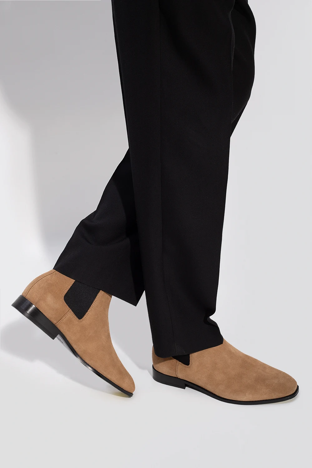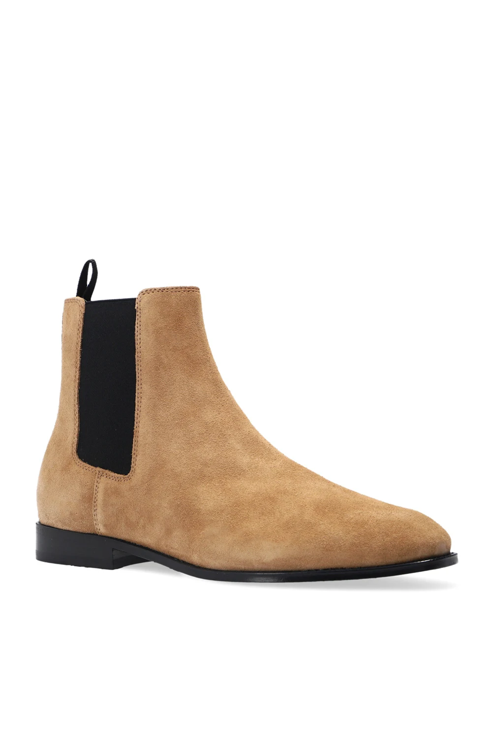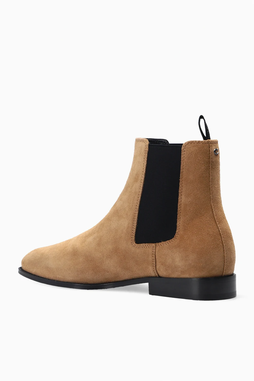 Beżowe sztyblety, model ‘Metropolitan’ Coach. Wykonane z zamszu. Po bokach wszyta czarna taśma elastyczna. Z tyłu aplikacja w kształcie logo. Czarna, skórzana podeszwa.