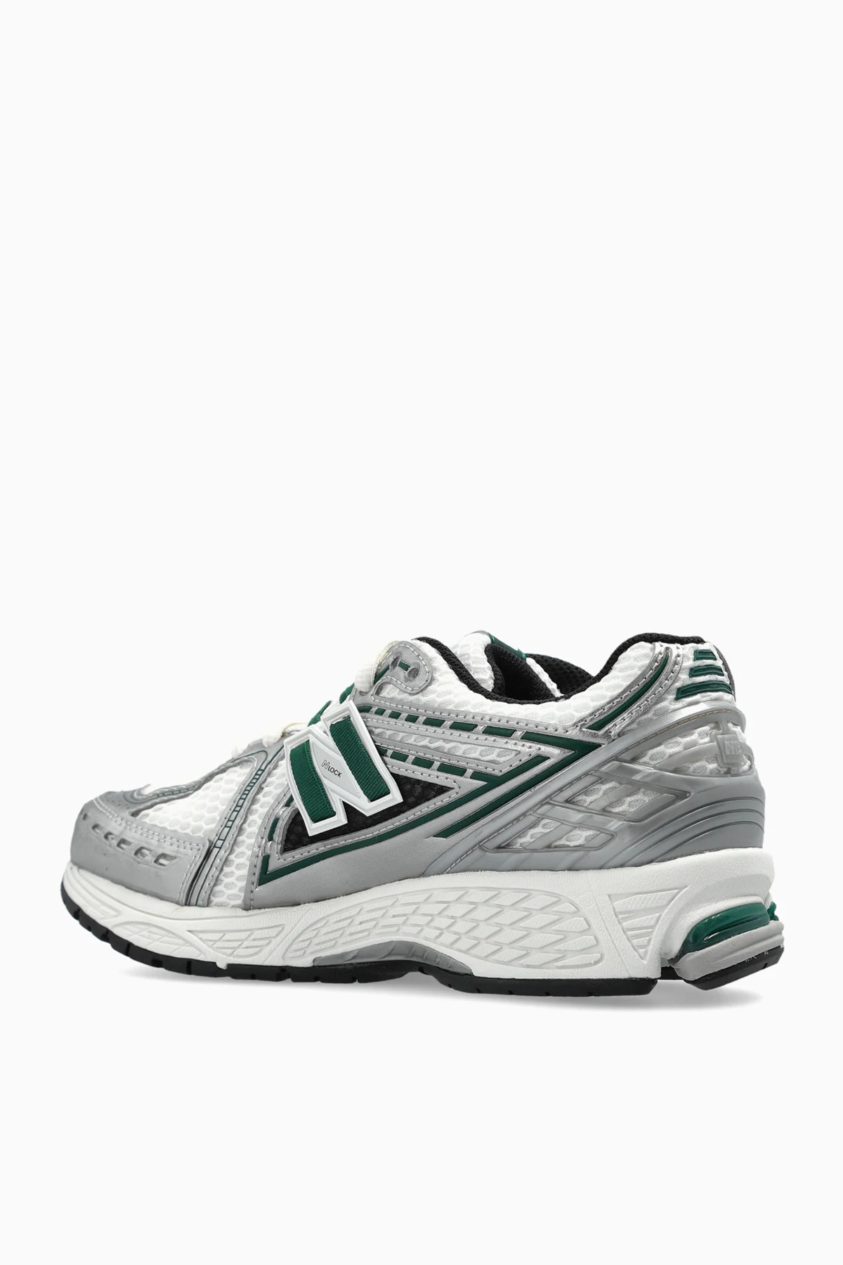 Wykonane z przewiewnej siateczki z syntetycznymi elementami, oferują niezrównany komfort noszenia. Dominujący biały kolor harmonijnie współgra z subtelnymi srebrnymi i zielonymi akcentami, tworząc elegancki i świeży wygląd.