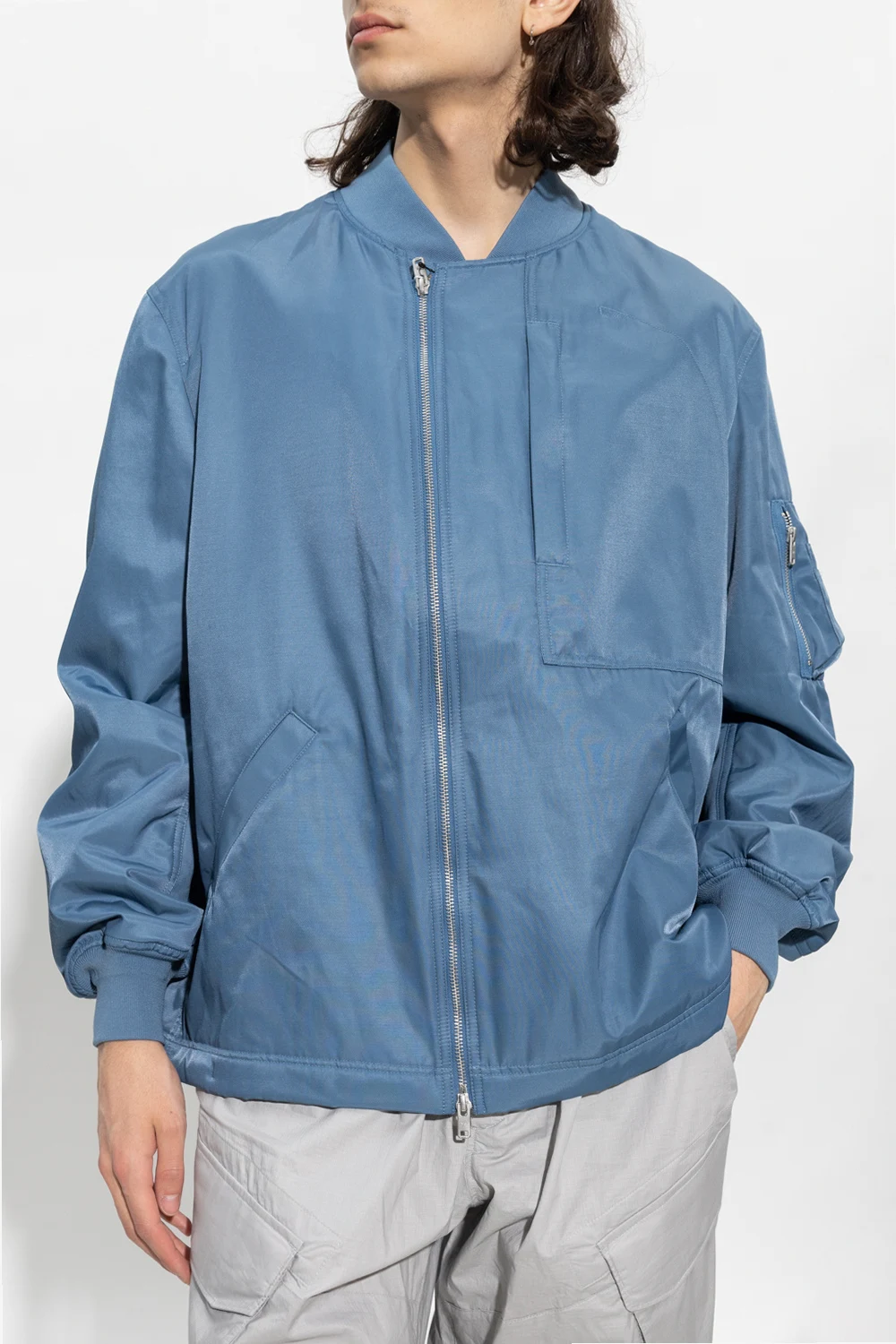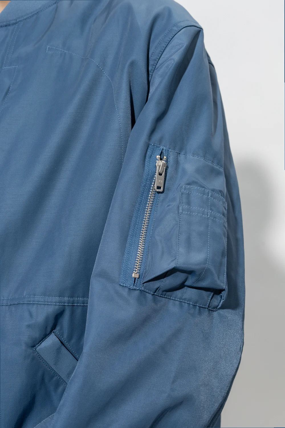 Niebieska, lekko ocieplana kurtka Y-3 Yohji Yamamoto. Zapinana na dwubiegunowy zamek. Z tyłu nadrukowane logo. Cztery kieszenie: dwie zapinane na zamek i dwie zapinane na zatrzask. Dół ściągany trokami. Dekolt i długie rękawy zakończone ściągaczem.