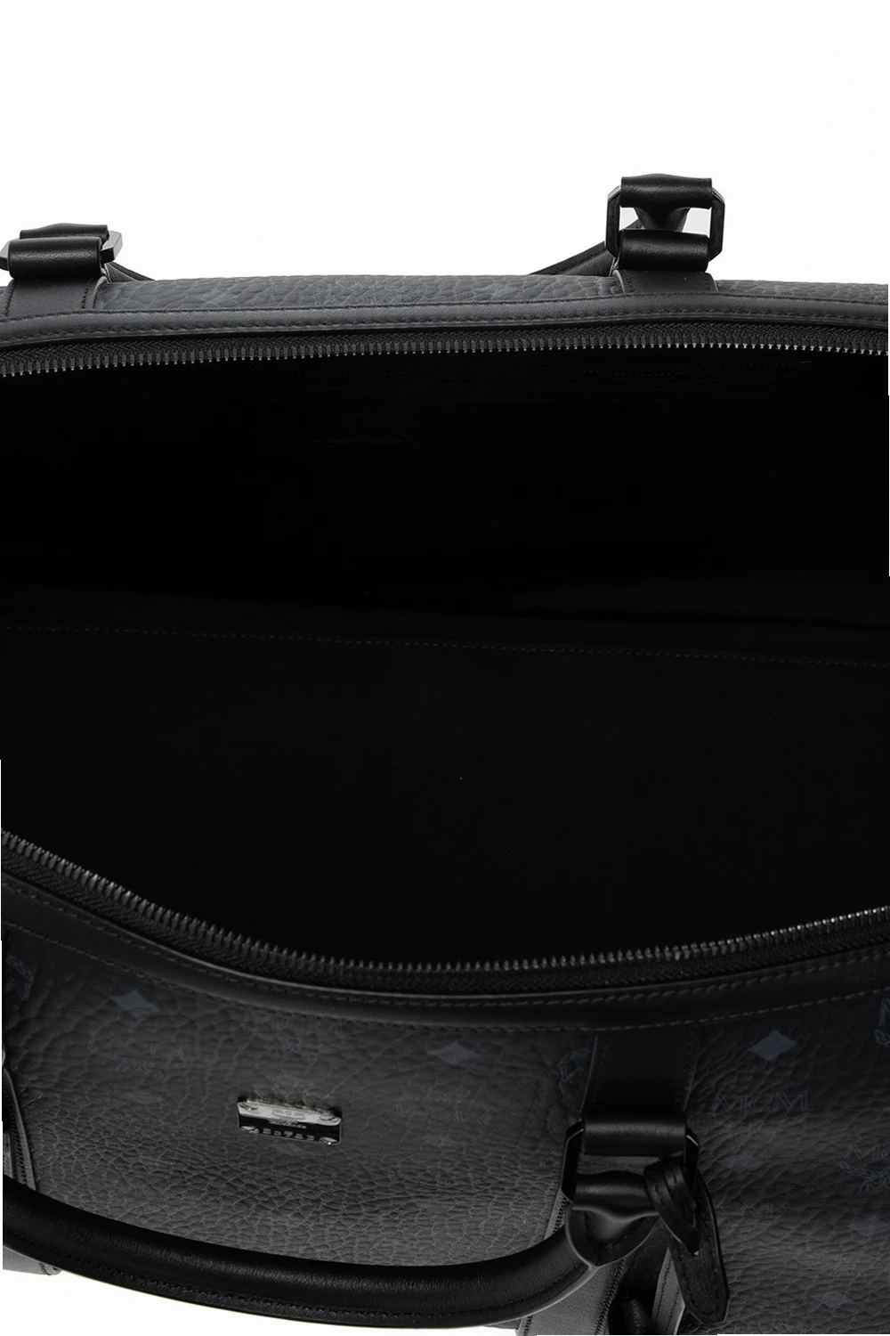 Torba została wykonana z wysokiej jakości skóry i płótna, co nadaje jej szlachetną fakturę, a ciemny, głęboki odcień czerni podkreśla jej wyrafinowany charakter. Ozdobiona subtelnym wzorem z literami "MCM" oraz metalowym logo, stanowi wyraz najwyższej klasy designu. Wnętrze torby kryje przestronną komorę główną, kieszeń zamykaną na zamek oraz dwie wsuwane, co czyni ją idealnym wyborem na podróż.
