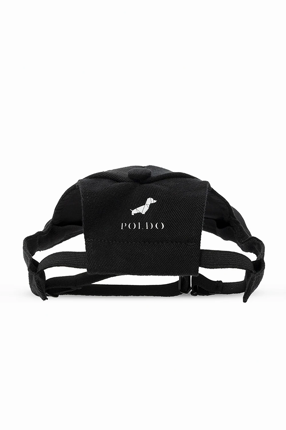 Czarna, bawełniana czapka z daszkiem dla psa Dsquared2 & Poldo Dog Couture. Ozdobiona wyszytym wzorem w kolorze białym oraz efektem znoszenia. Regulowane paski.