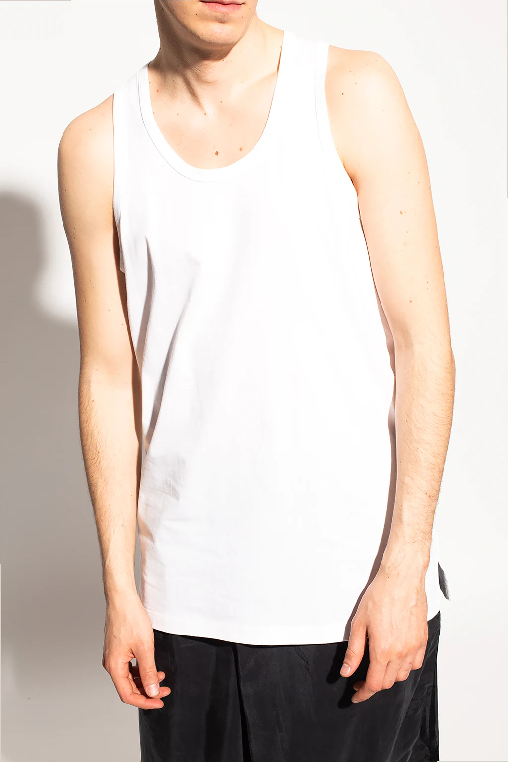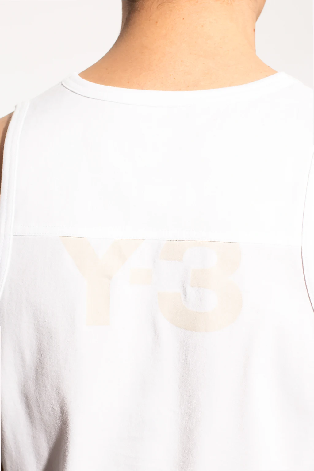 Biały top bez rękawów Y-3 Yohji Yamamoto. Wykonana z bawełny. Nadrukowane logo. Okrągły dekolt.