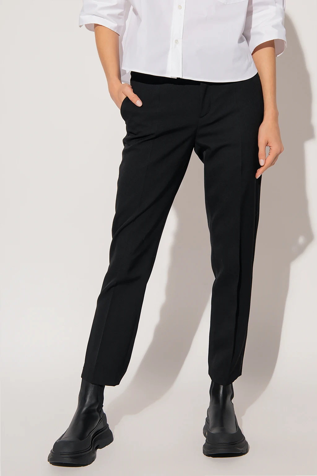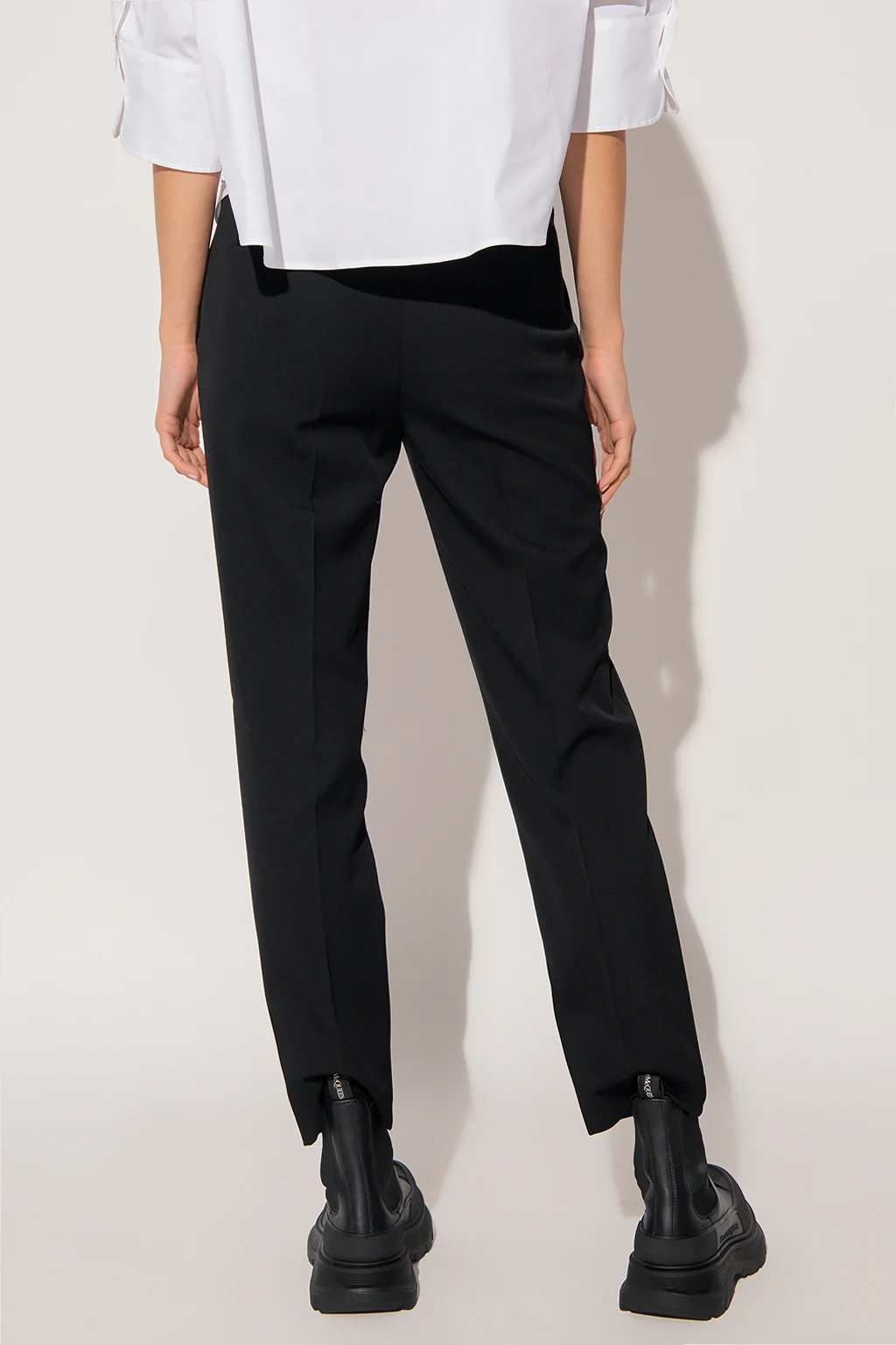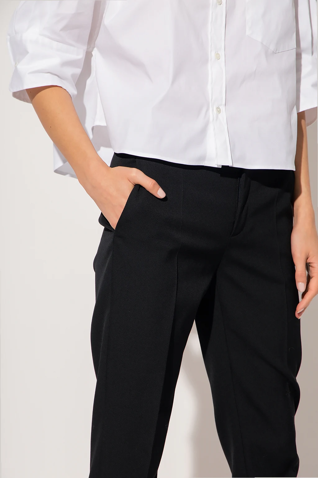 Czarne spodnie w kant Red Valentino. Zapinane na zamek oraz haftki. Cztery wsuwane kieszenie. Lekko zwężane nogawki.