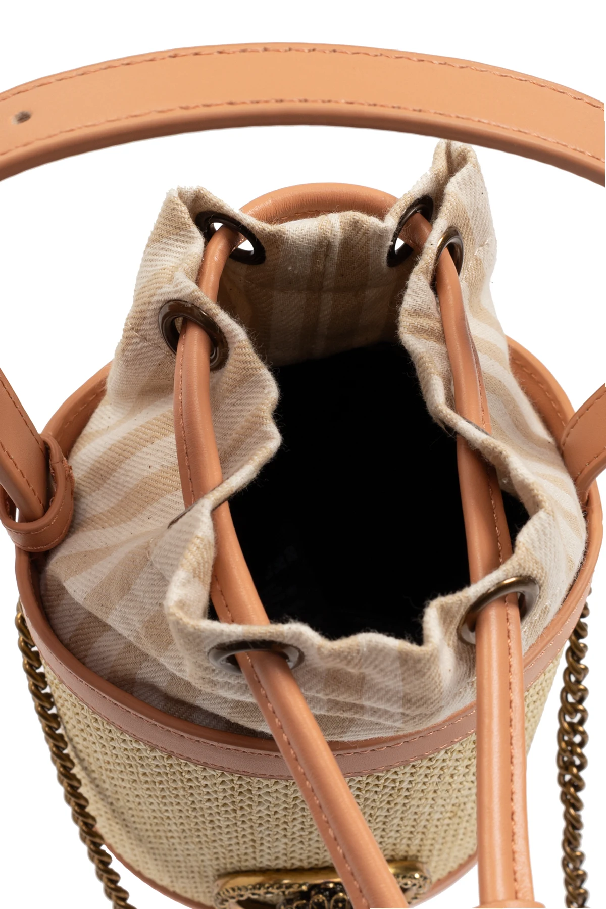 Eleganckie połączenie plecionego materiału z luksusową skórą.