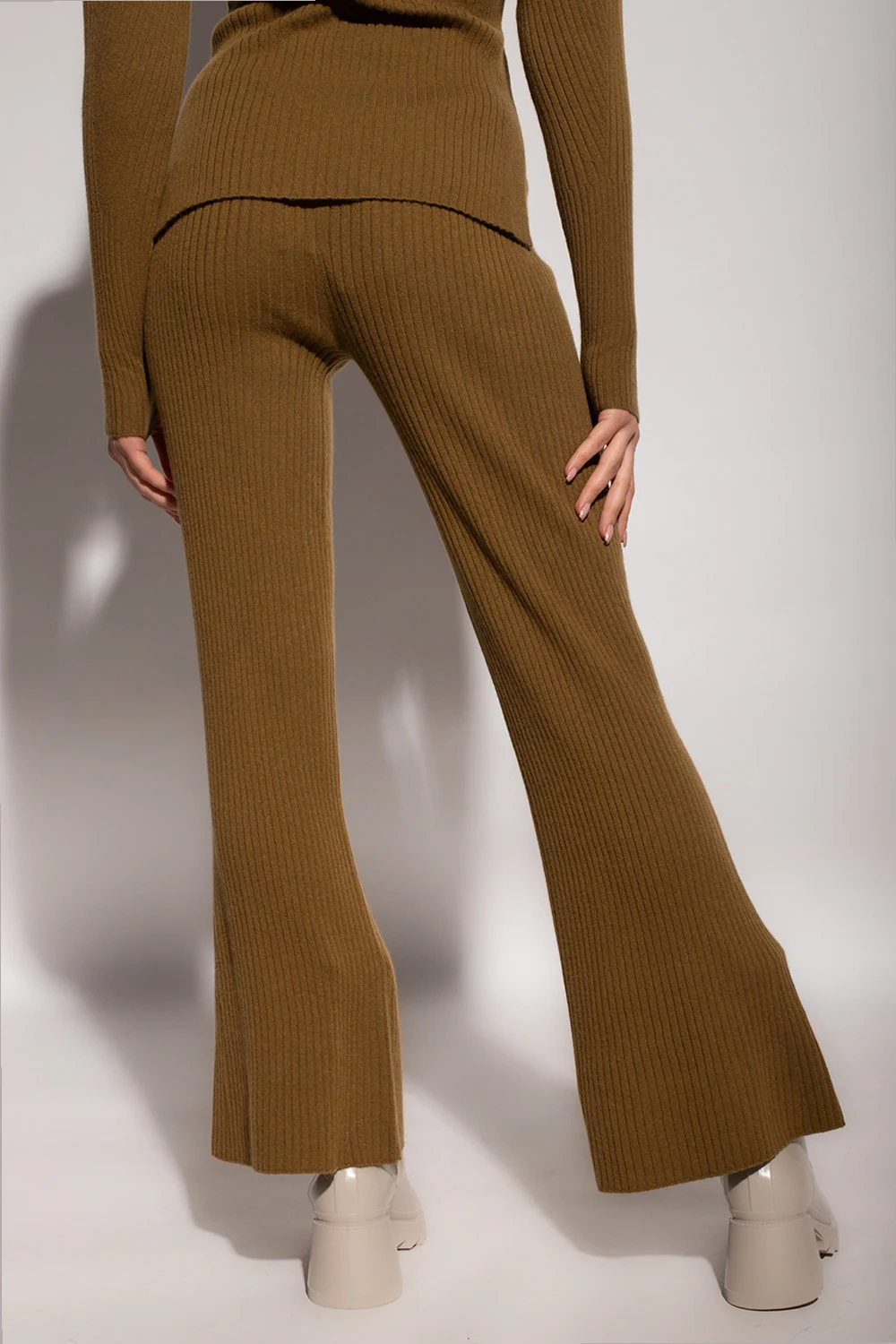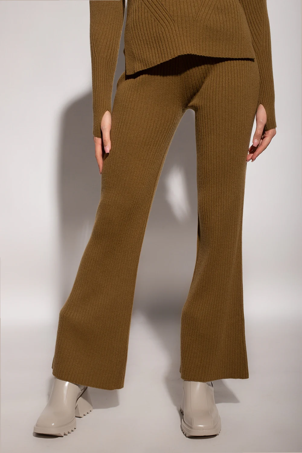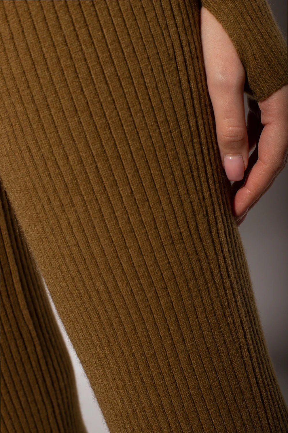 Prążkowane spodnie w kolorze ‘khaki’ Ulla Johnson. Wykonane z wełny i kaszmiru. W pasie wszyta guma. Rozszerzone nogawki.
