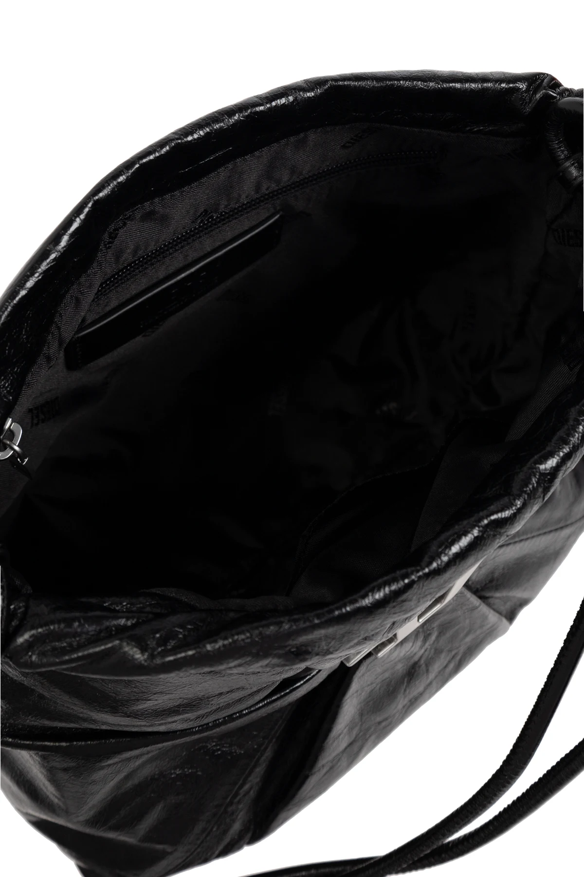 Jej prostokątny kształt z subtelnymi marszczeniami na górze nadaje nieformalnego, lecz wyrafinowanego charakteru. Metalowe zapięcie z logo Diesel na przodzie stanowi zarówno estetyczny, jak i praktyczny detal. Wnętrze torebki jest przestronne i zawiera kieszeń na zamek oraz wsuwaną kieszeń, co zapewnia doskonałą organizację.