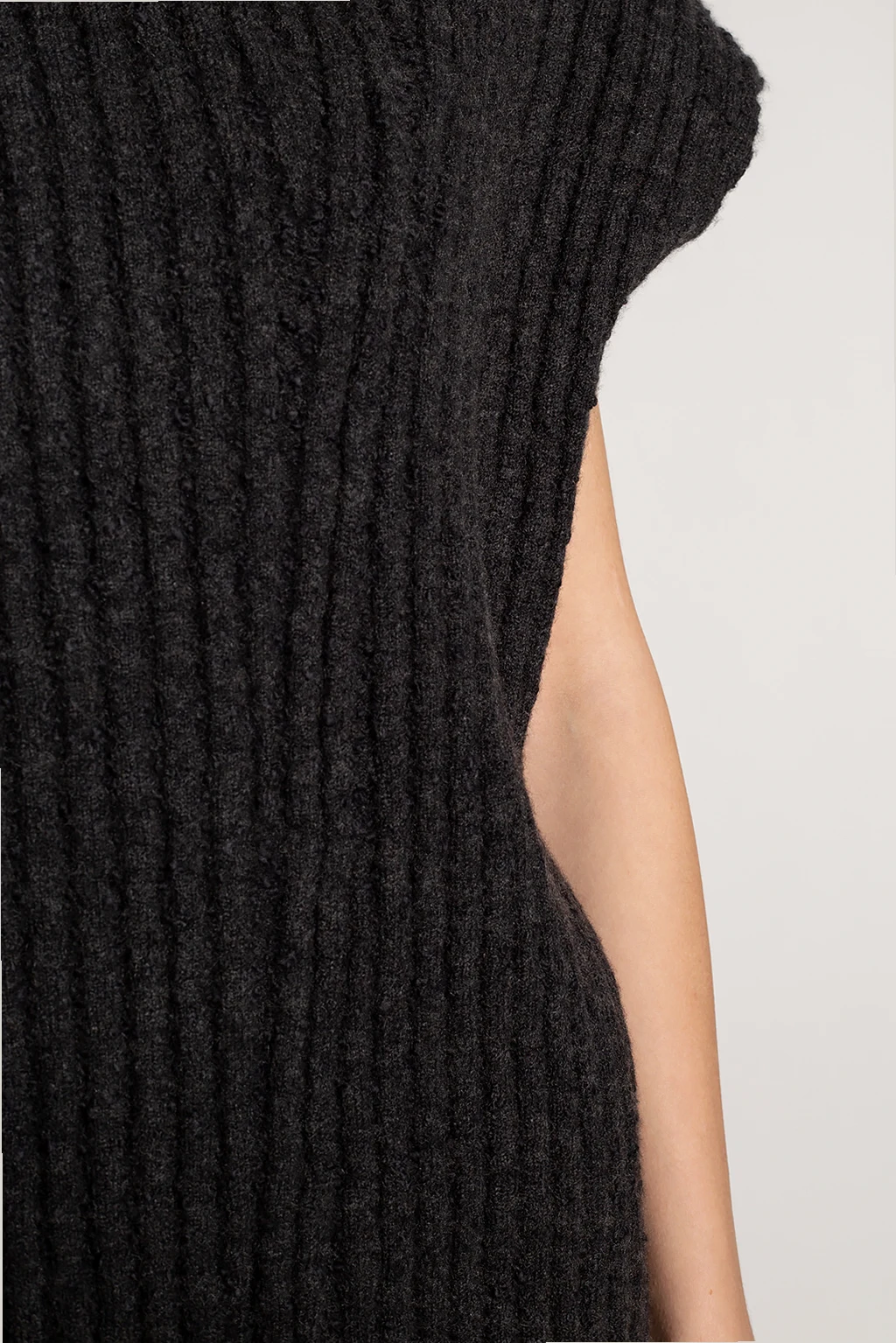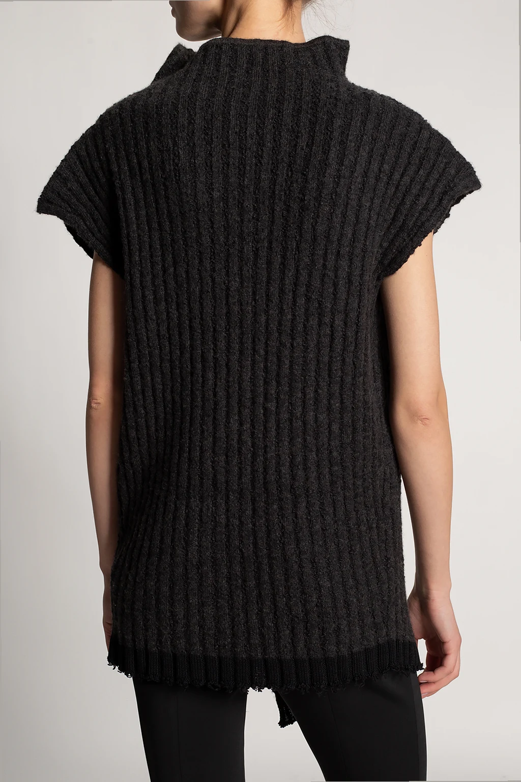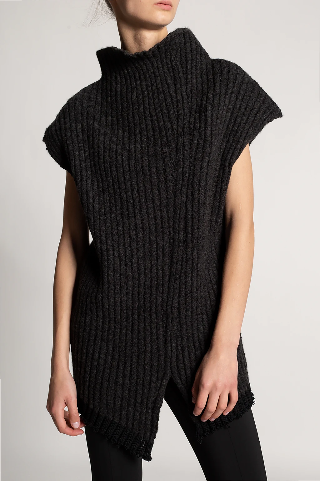 Ciemnoszary, prążkowany top bez rękawów The Row. Wykonany z bawełny, kaszmiru i jedwabiu. Asymetryczne rozcięcie z przodu.