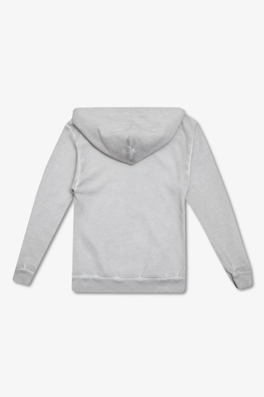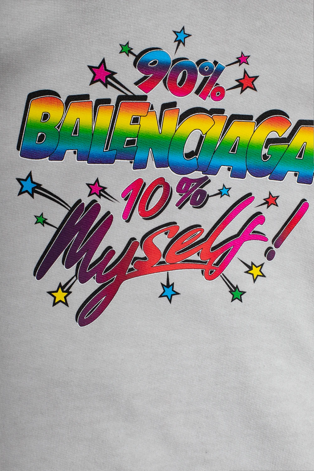 Szara bluza z kapturem Balenciaga Kids. Wykonana z bawełny. Ozdobiona kolorowym wzorem z logo. Wsuwana kieszeń. Dół i długie rękawy wykończone ściągaczem.