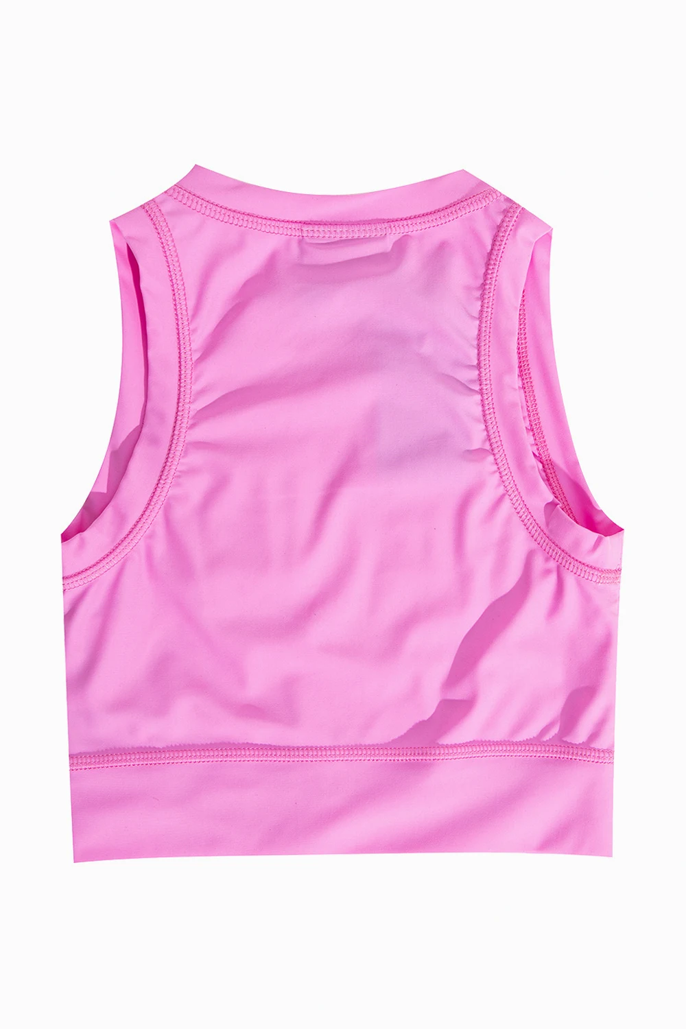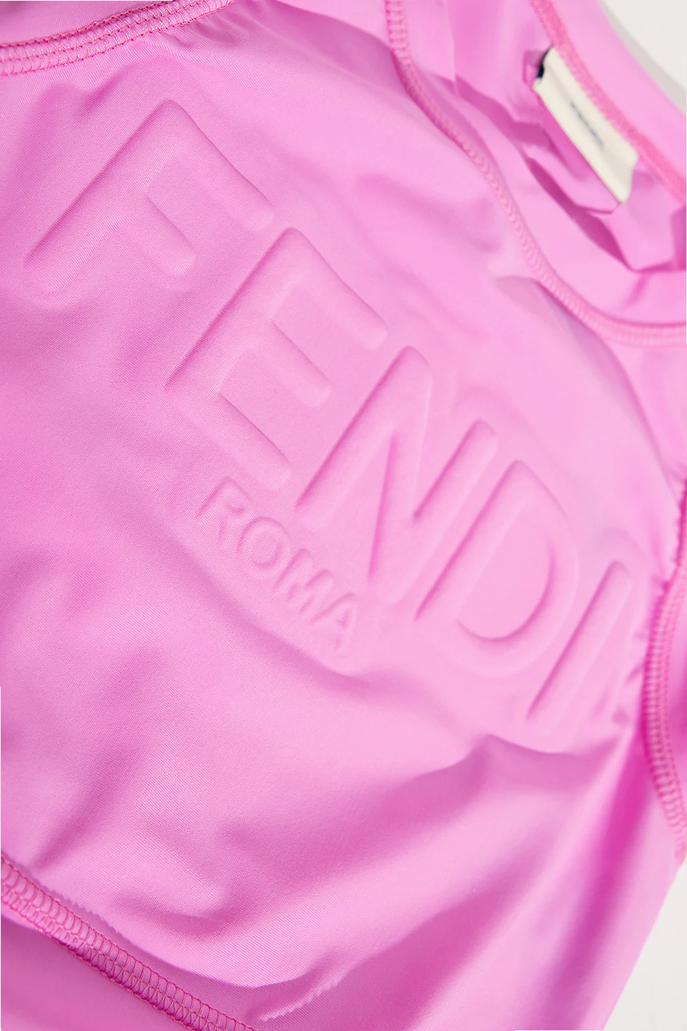 Różowy top bez rękawów Fendi Kids. Z przodu wypukłe logo. Okrągły dekolt.