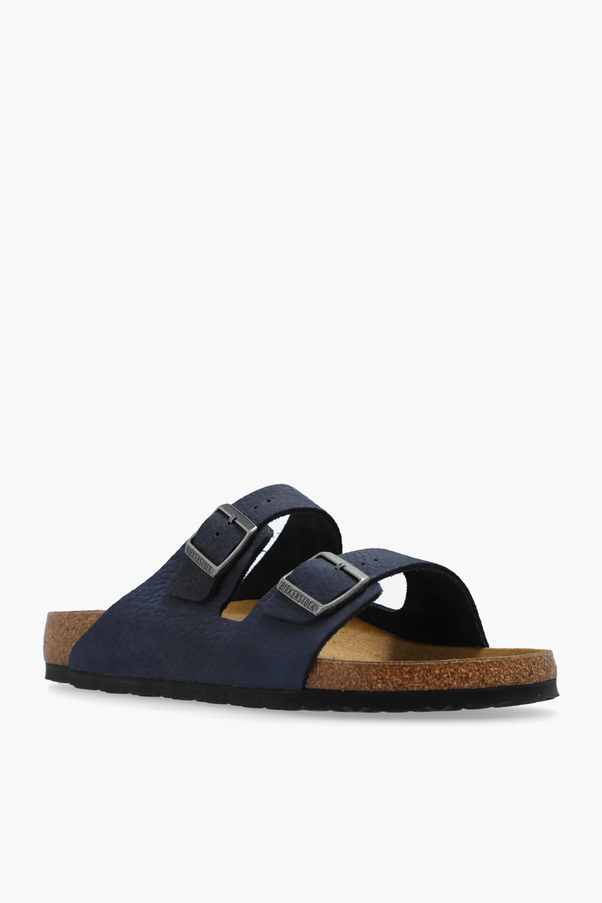 Odkryj kwintesencję komfortu i elegancji dzięki klapskom Arizona BS od cenionej marki Birkenstock . Ich ponadczasowy design łączy w sobie granatową barwę dominującą, która doskonale komponuje się z naturalnym odcieniem korkowej podeszwy, tworząc harmonijny kontrast. Dwie szerokie, skórzane paski krzyżujące się na śródstopiu, wyposażone w regulowane metalowe klamry, zapewniają idealne dopasowanie oraz niezrównany styl.