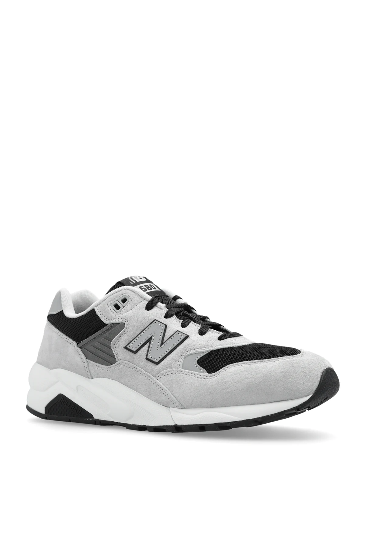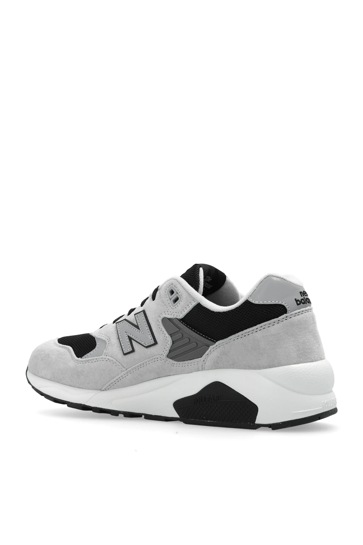 Szaro-czarne, sznurowane buty sportowe, model ‘MT580CB2’ New Balance. Wykonane z zamszu, siatki oraz materiałów syntetycznych. Ozdobione logo. Odblaskowe detale. Podeszwa środkowa wyposażona jest w technologię Rollbar®, co gwarantuje wyjątkowy komfort podczas codziennego użytkowania. Czarno-jasnoszara, odporna na ścieranie i uszkodzenia mechaniczne podeszwa zewnętrzna z gumowym bieżnikiem zapewnia stabilizację i dobrą przyczepność do podłoża.