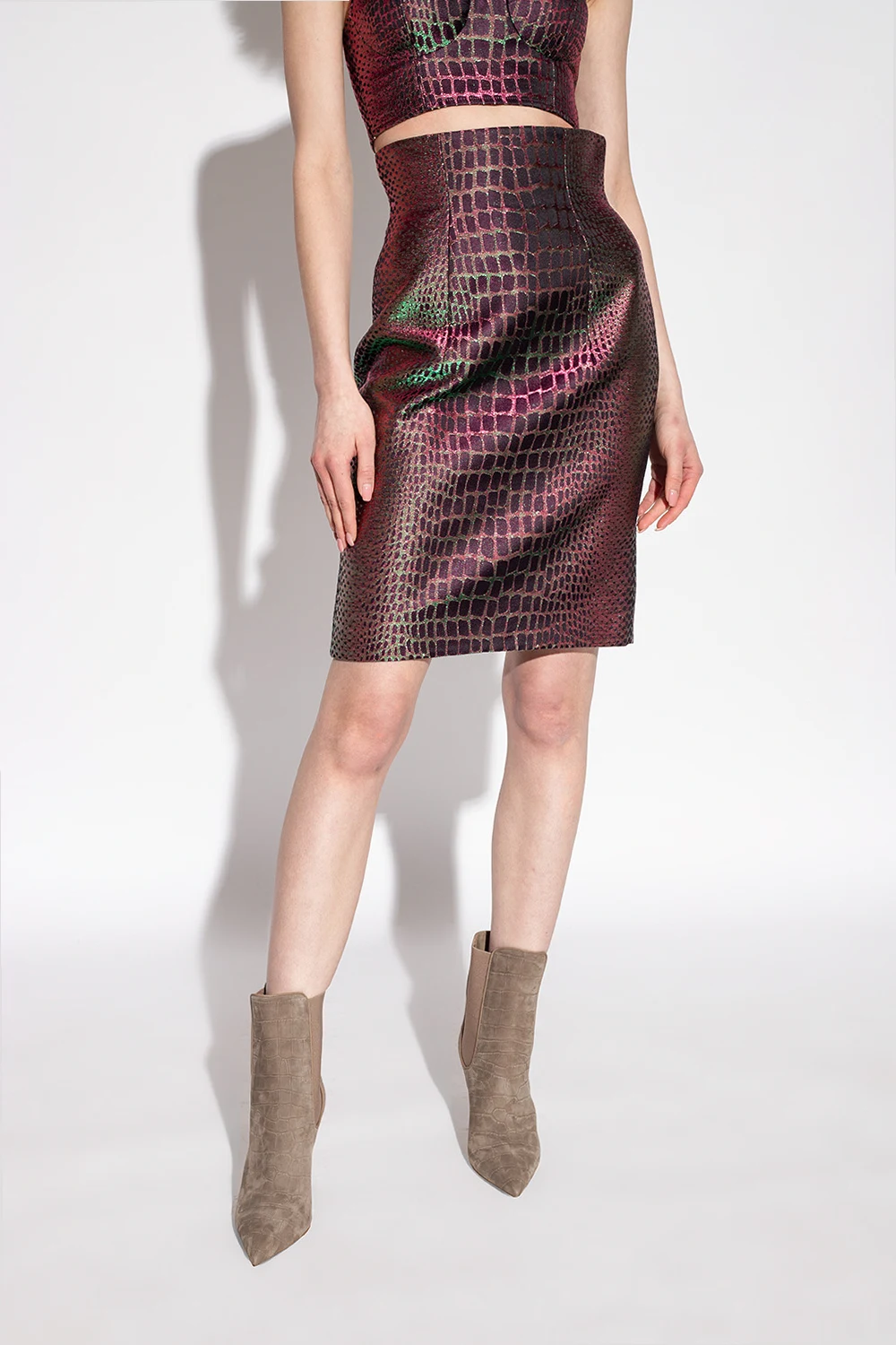 Szare botki na obcasie, model ‘Moneta’ Balmain. Wykonane ze skóry o dekoracyjnej strukturze. Po bokach taśma elastyczna. Nosek w szpic. Beżowa, skórzana podeszwa.