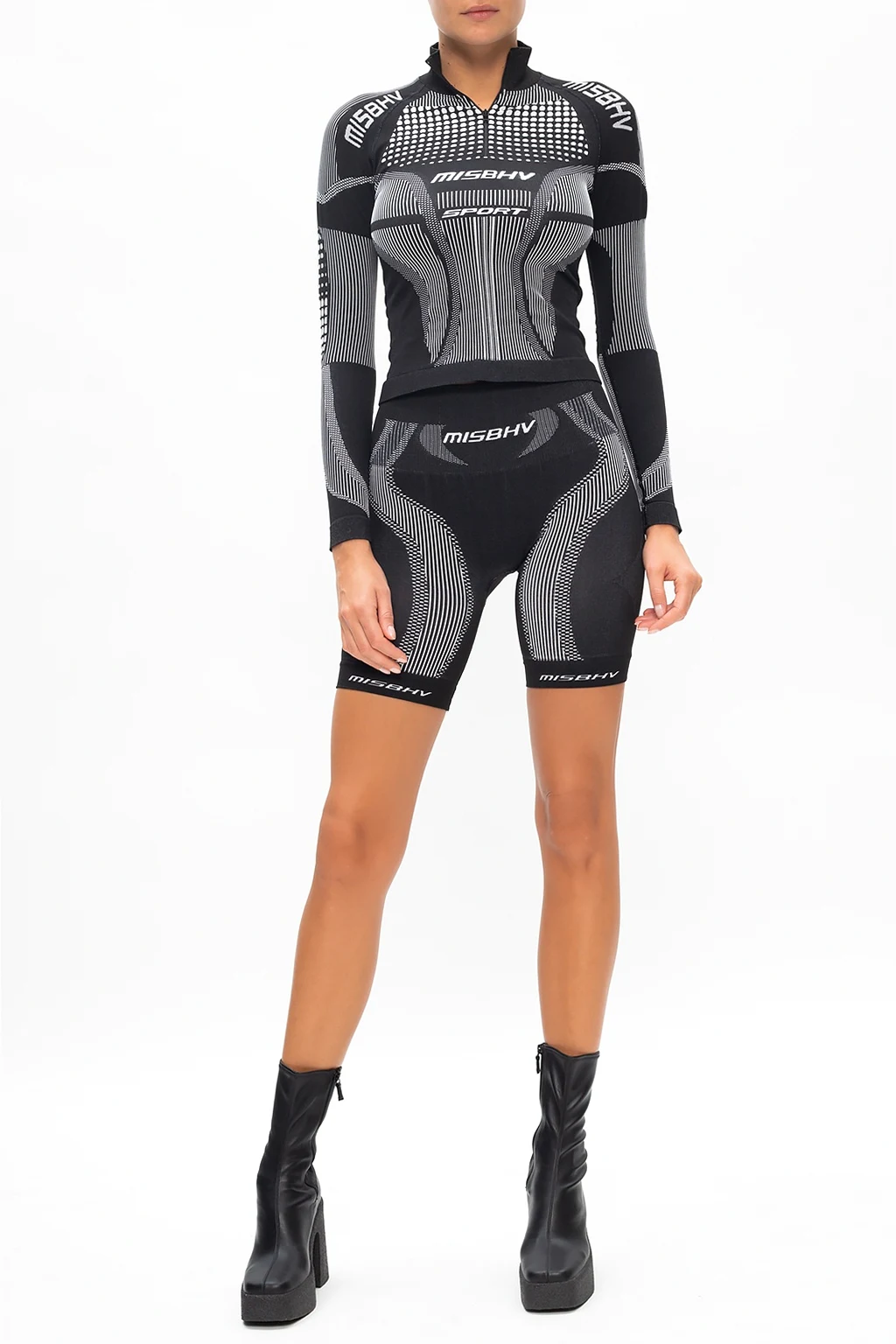 Czarne, krótkie legginsy, model ‘Sport Active Classic’ MISBHV. Wykonane z oddychającej tkaniny termoaktywnej pochodzącej w 60% z recyklingu. W pasie wszyta guma. Wzór z logo w kolorze białym. Nogawki zakończone ściągaczami. Produkt powstał w Polsce przy użyciu energii z paneli słonecznych, żeby zmniejszyć negatywny wpływ na środowisko.
