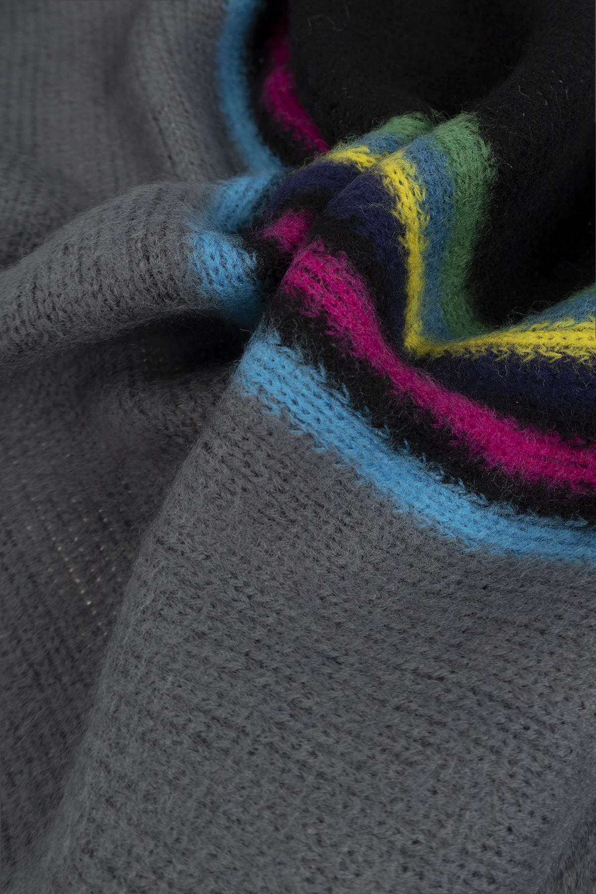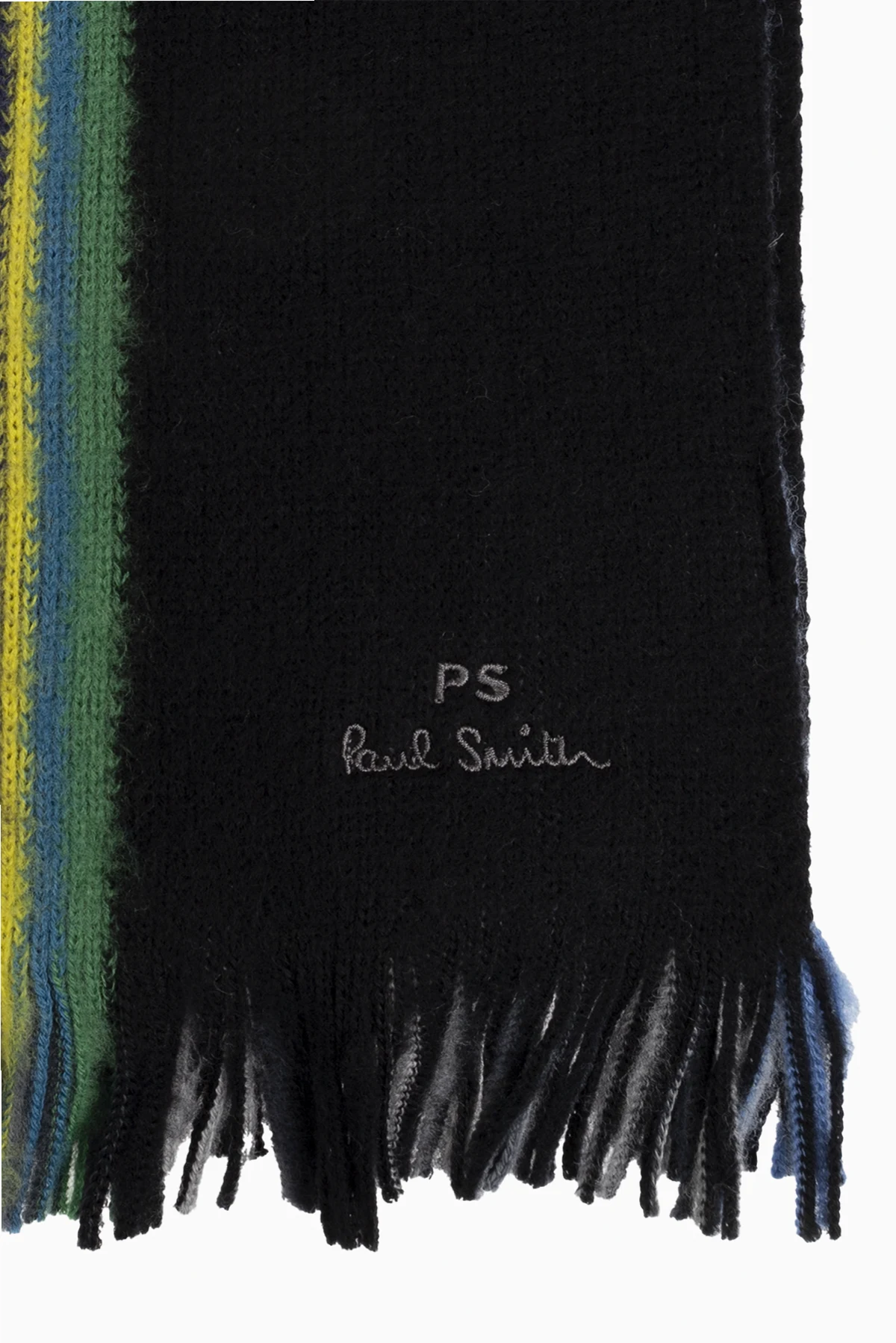 Wykonany z najwyższej jakości wełny, szal gwarantuje niesamowity komfort noszenia i przyjemność dotyku. Zakończenie w formie delikatnych frędzli dodaje mu wyrafinowania, a wyhaftowane logo „PS Paul Smith” na czarnej części podkreśla jego prestiżowy charakter.