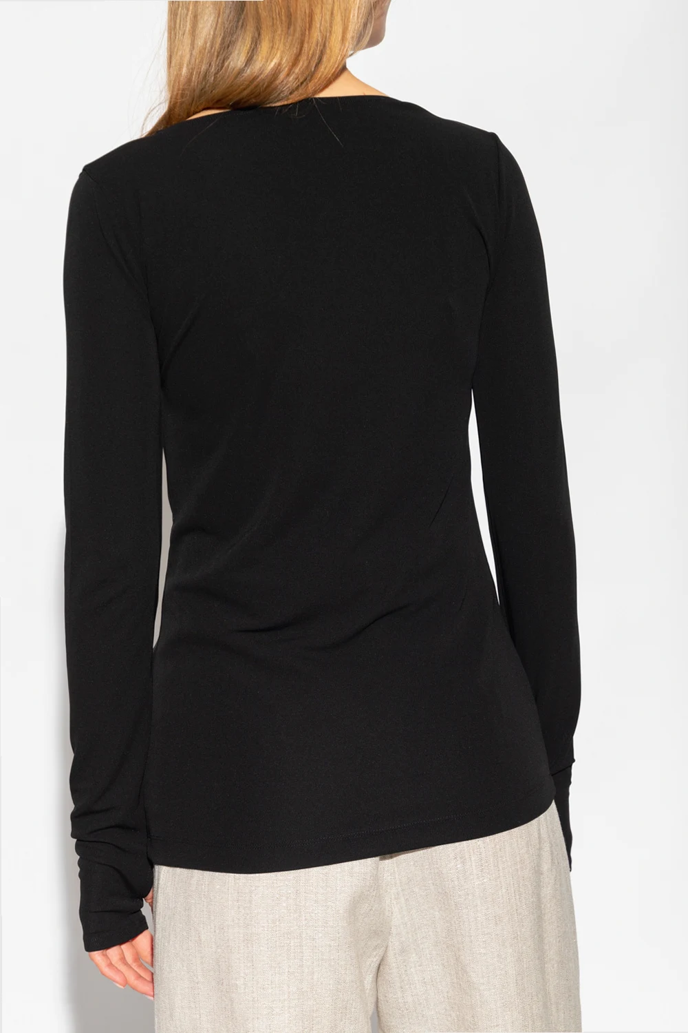 Czarny top Toteme. Okrągły dekolt. Długie rękawy z wycięciem na kciuk.