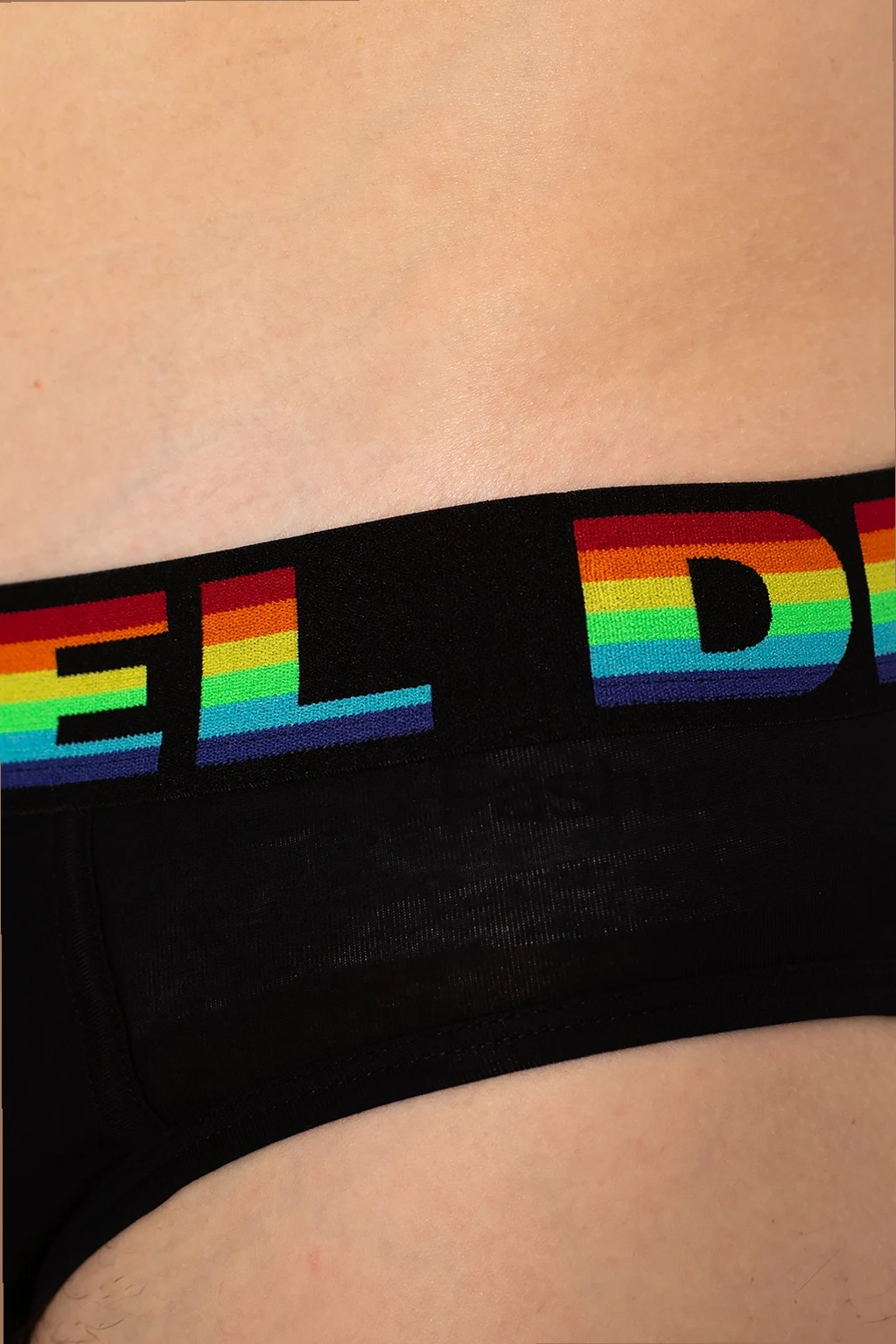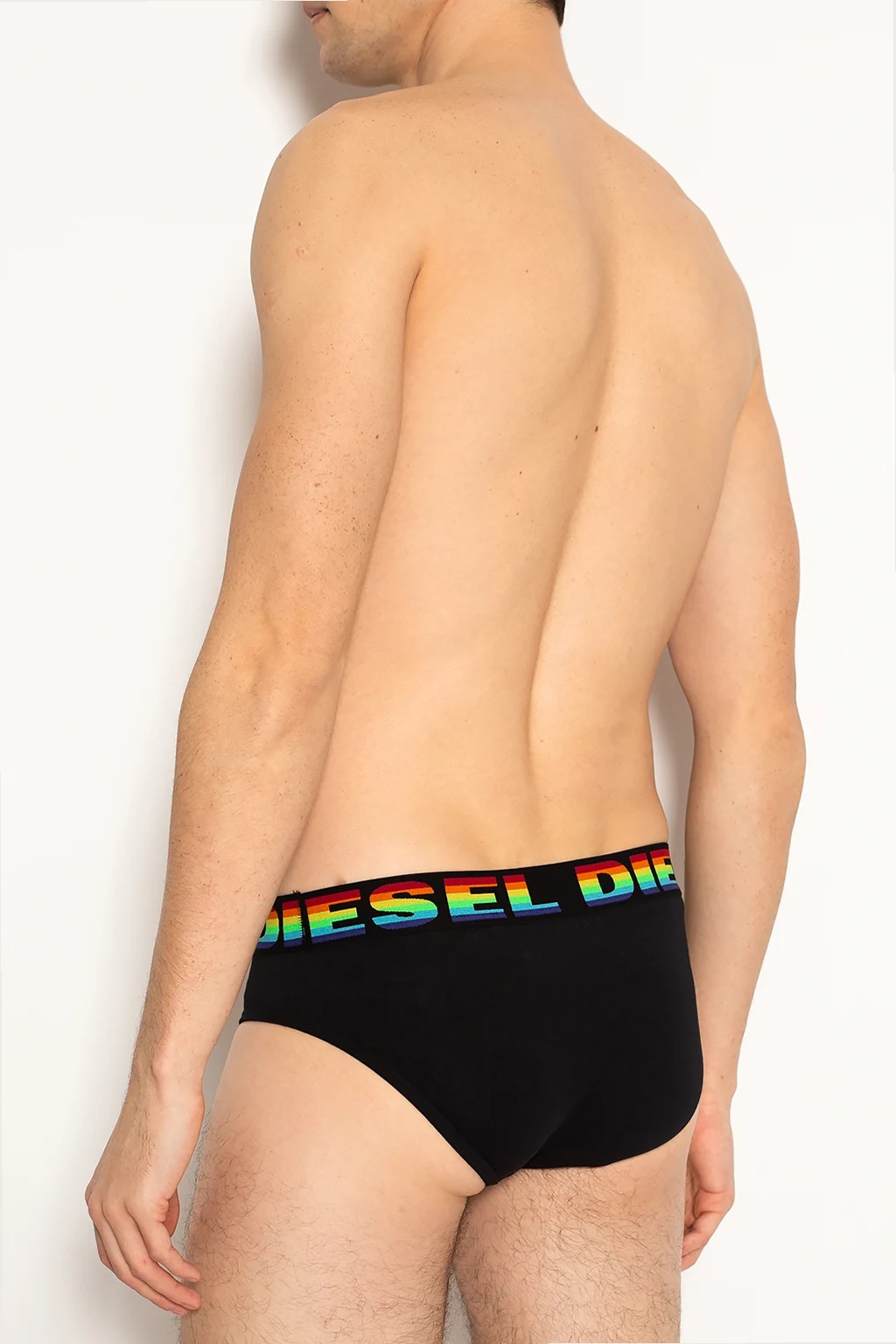 Trójpak slipów w kolorze czarnym Diesel. Wykonane z bawełny. W pasie guma z wyszytym kolorowym logo.