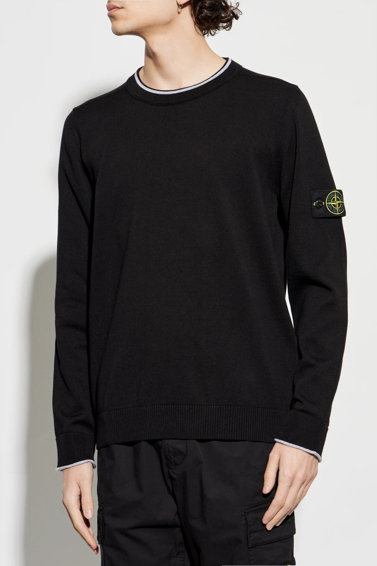 Prezentujemy Sweter z okrągłym dekoltem marki Stone Island, będący kwintesencją połączenia elegancji i minimalizmu . Dominujący czarny kolor, z subtelnym białym obszyciem przy okrągłym dekolcie i mankietach, nadaje mu wyjątkowego uroku. Klasyczny krój swetra, wykonany z najwyższej jakości bawełny, zapewnia komfort i uniwersalność w każdej stylizacji.