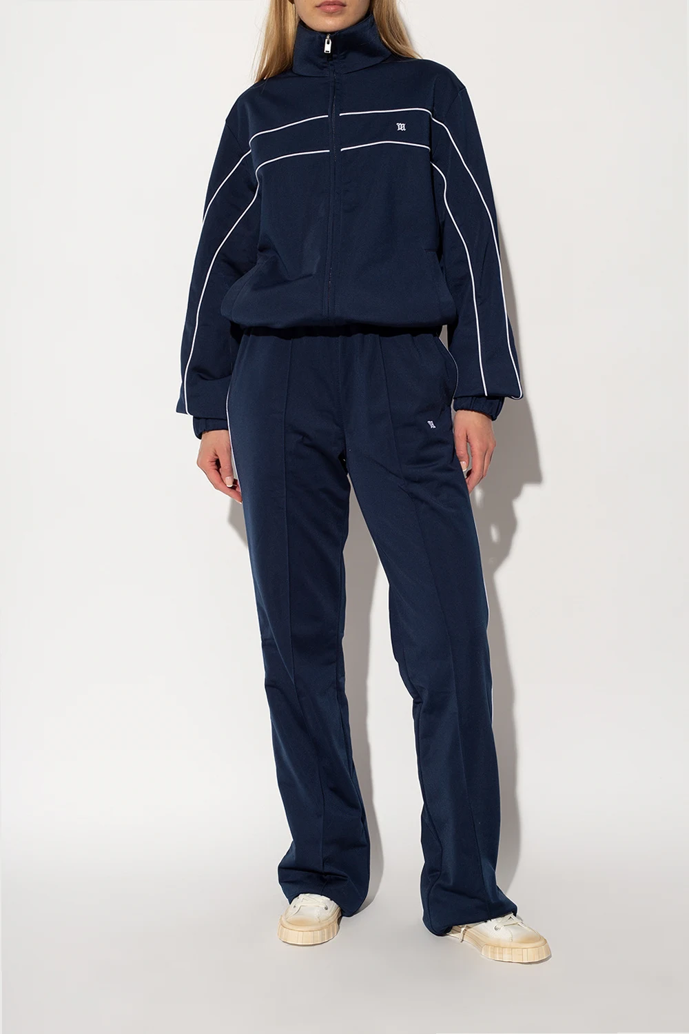Białe, sznurowane buty sportowe za kostkę, model ‘The Army’ MISBHV. Z boku ozdobione beżowo-kremową, gumową naszywką z wytłoczonym logo. Biało-beżowa, gumowa podeszwa.