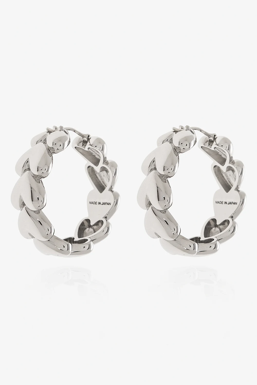 Okrągłe kolczyki z motywem serc w kolorze srebrnym Ambush. Wykonane z mosiądzu. Zapinane na zatrzask.