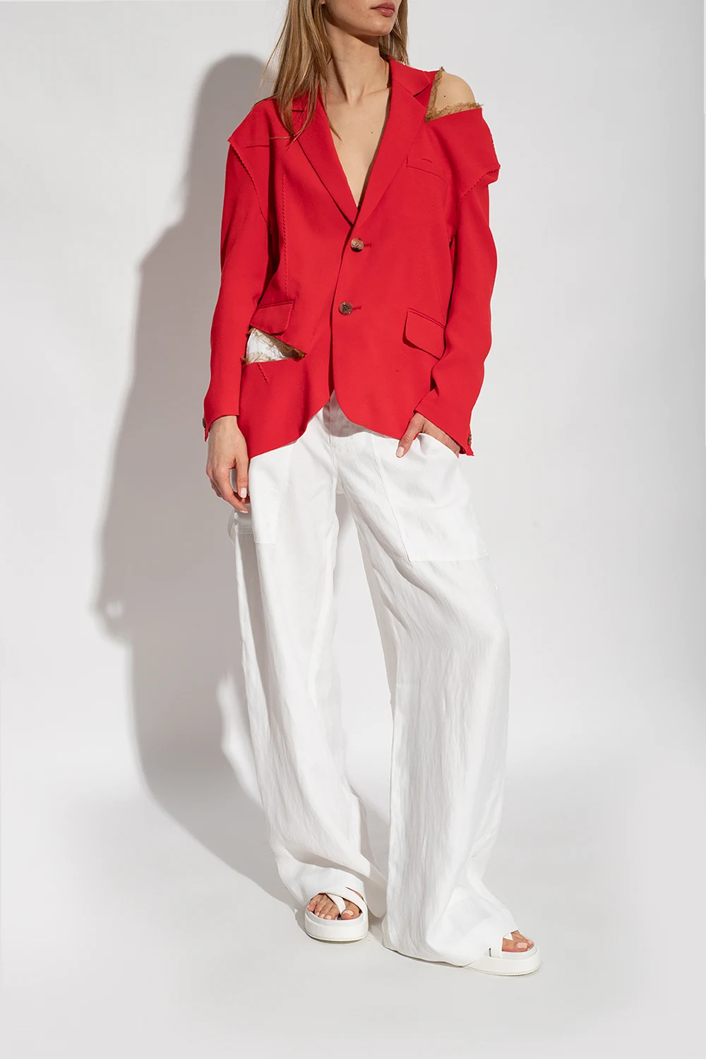 Białe klapki na platformie Dries Van Noten. Wykonane ze skóry. Biała, gumowa podeszwa.