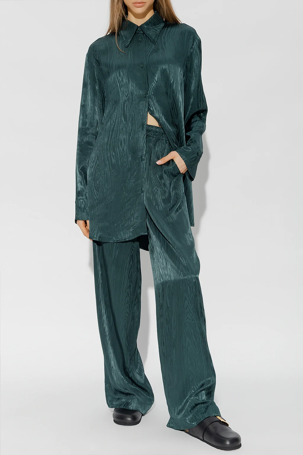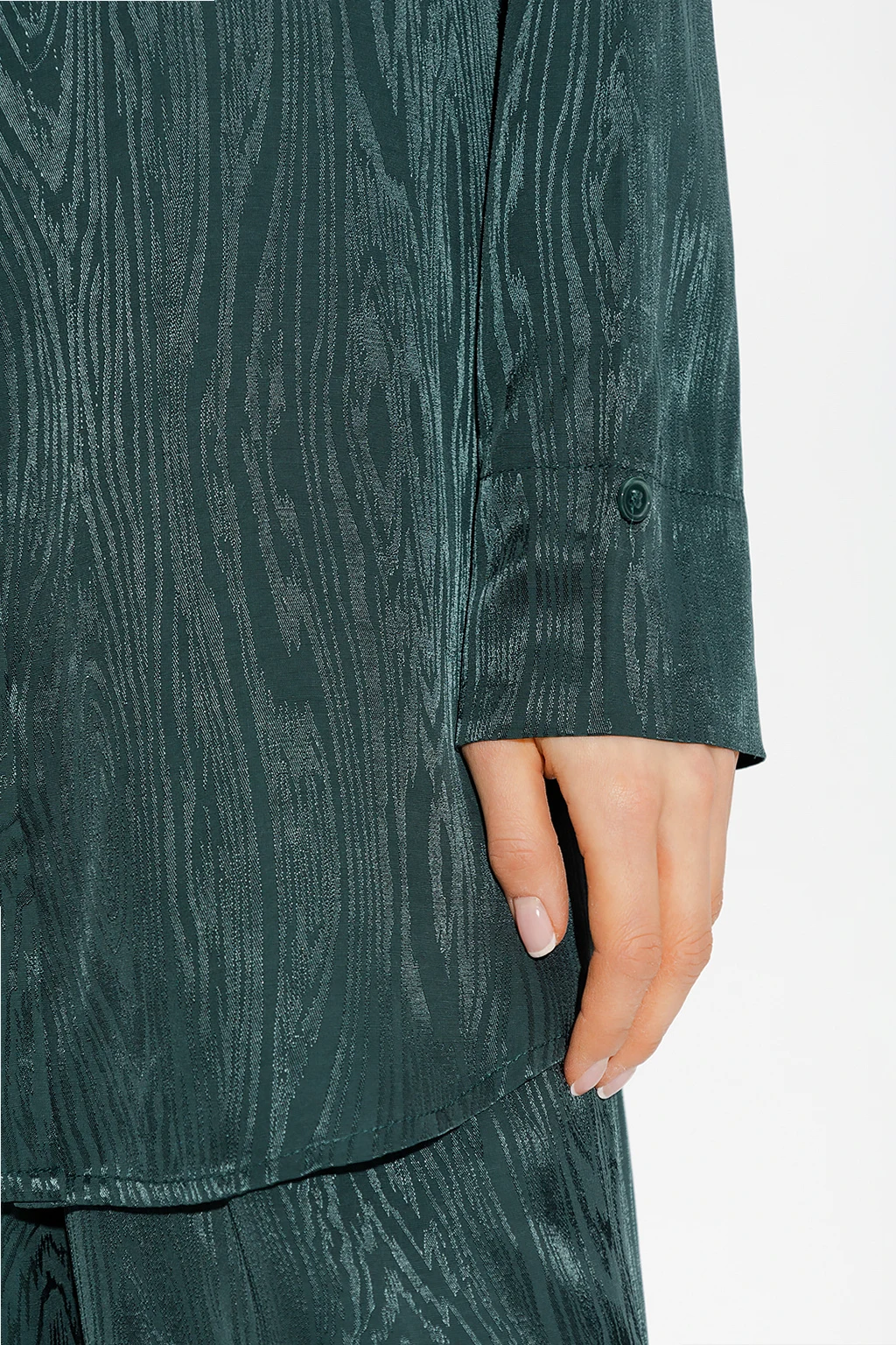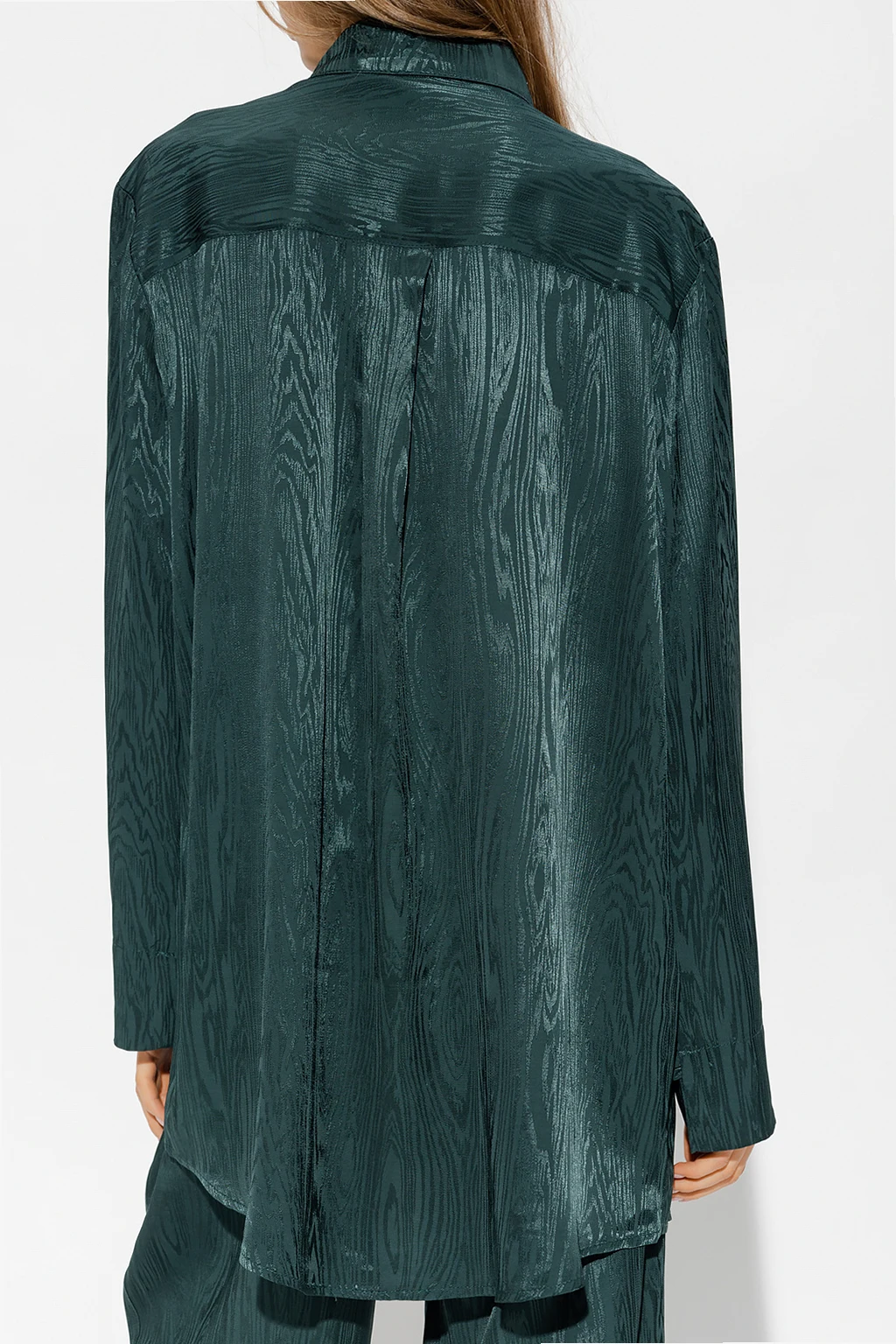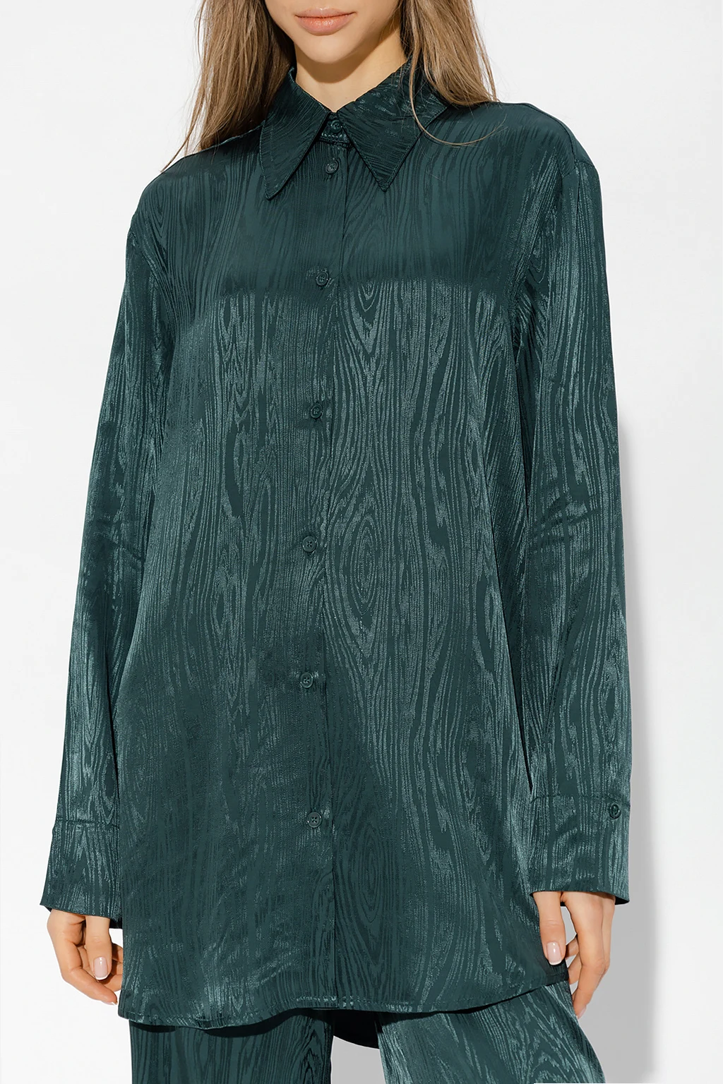 Ciemnozielona koszula o luźnym kroju, model ‘Pommen’ Holzweiler. Zapinana na guziki. Ozdobiona wzorem. Długie rękawy zakończone mankietem zapinanym na guzik.