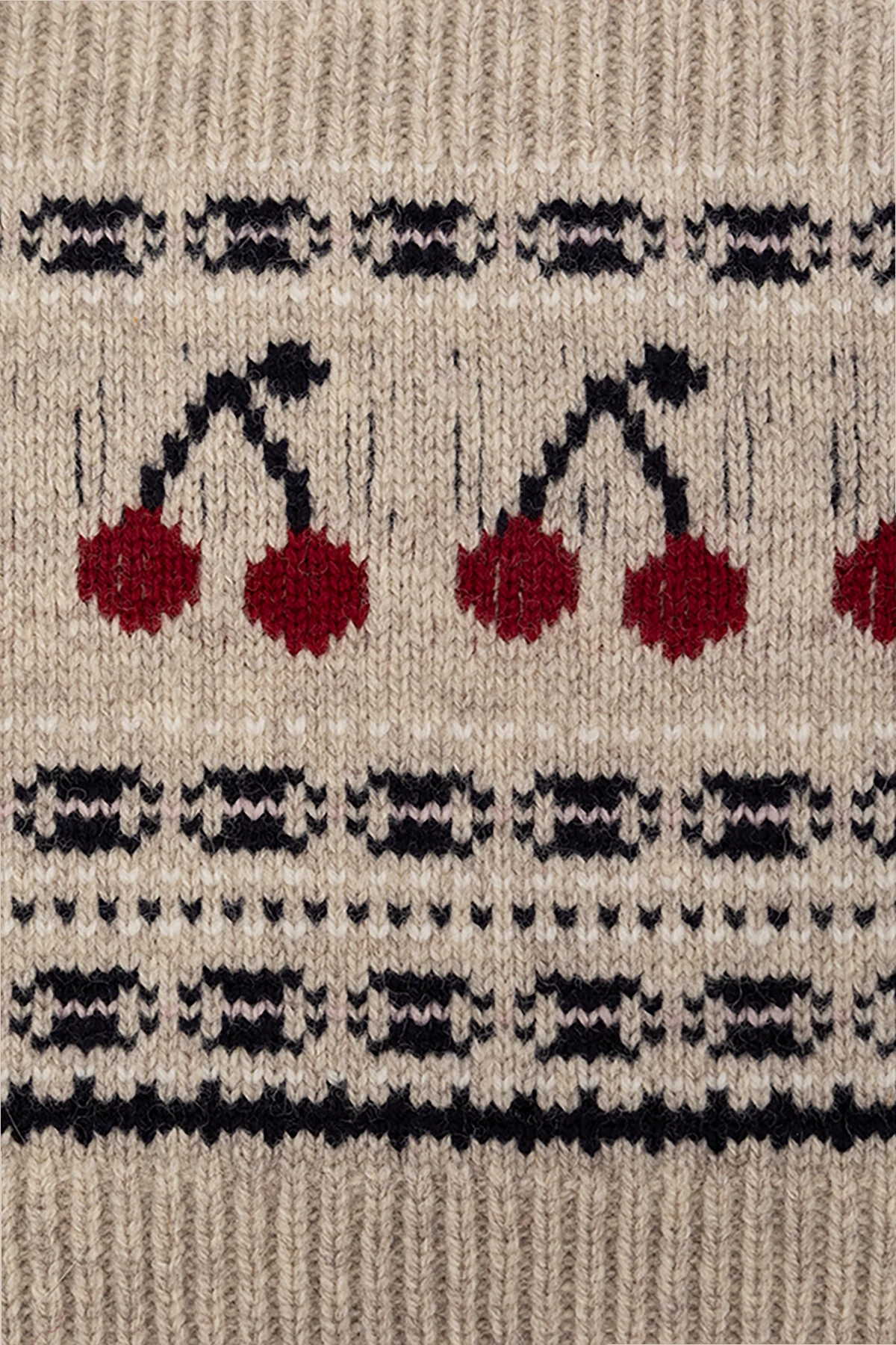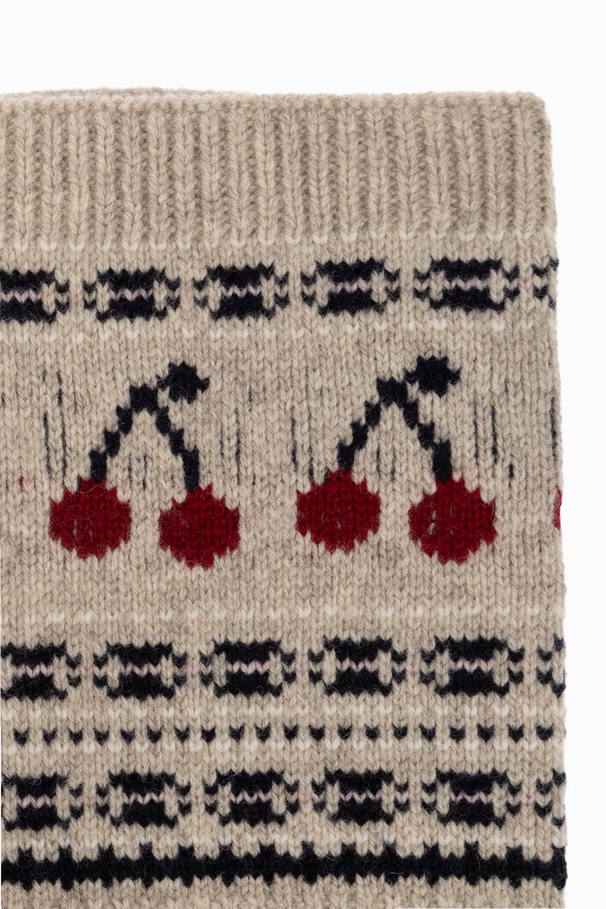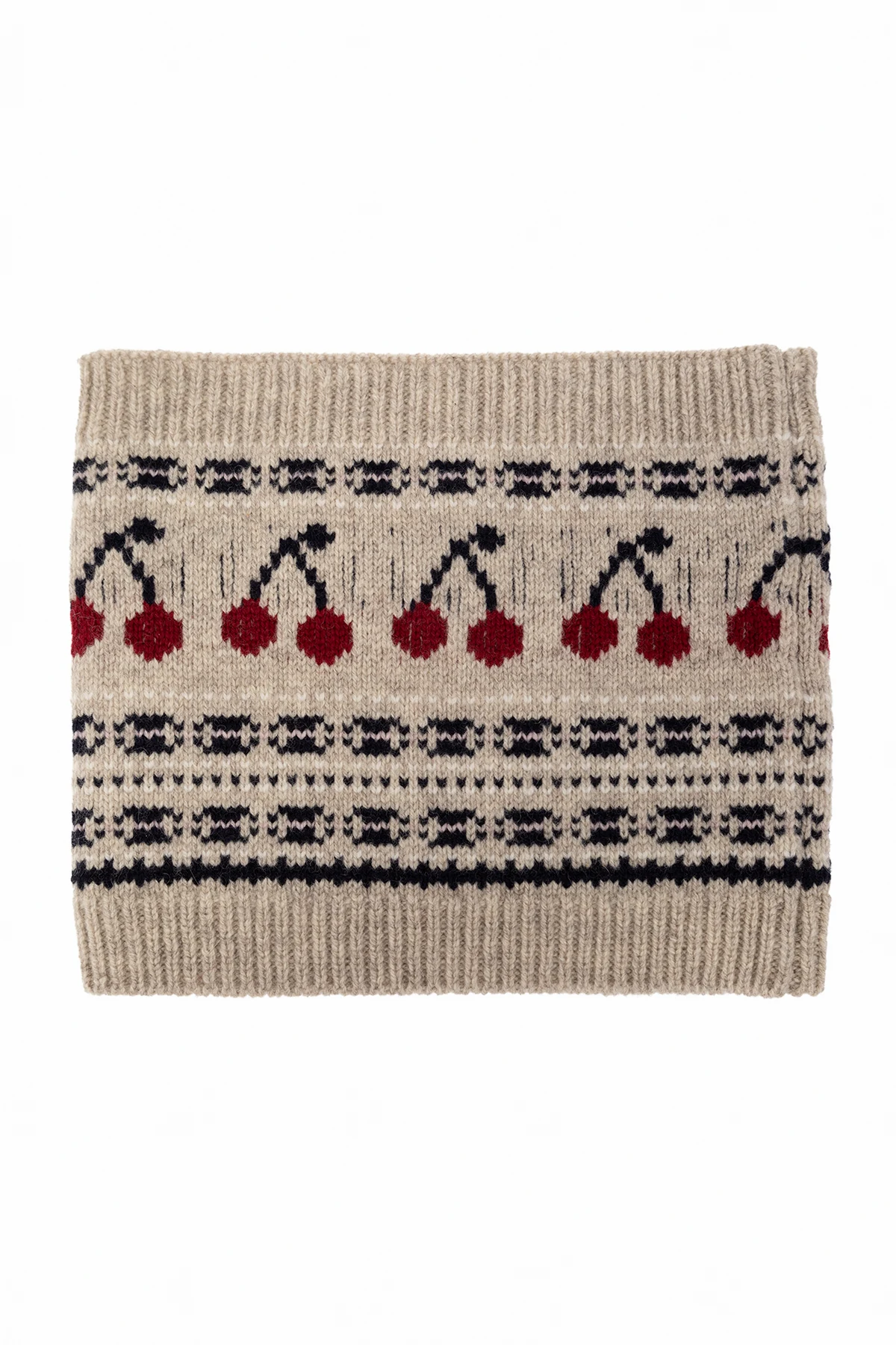 Szarobeżowy komin, model ‘Bothilde’ Bonpoint. Wykonany z wełny. Ozdobiony wzorem z logo w kolorze granatowo-czerwono-białym.