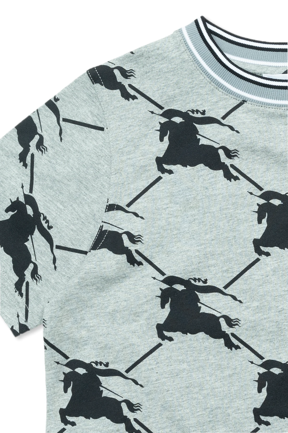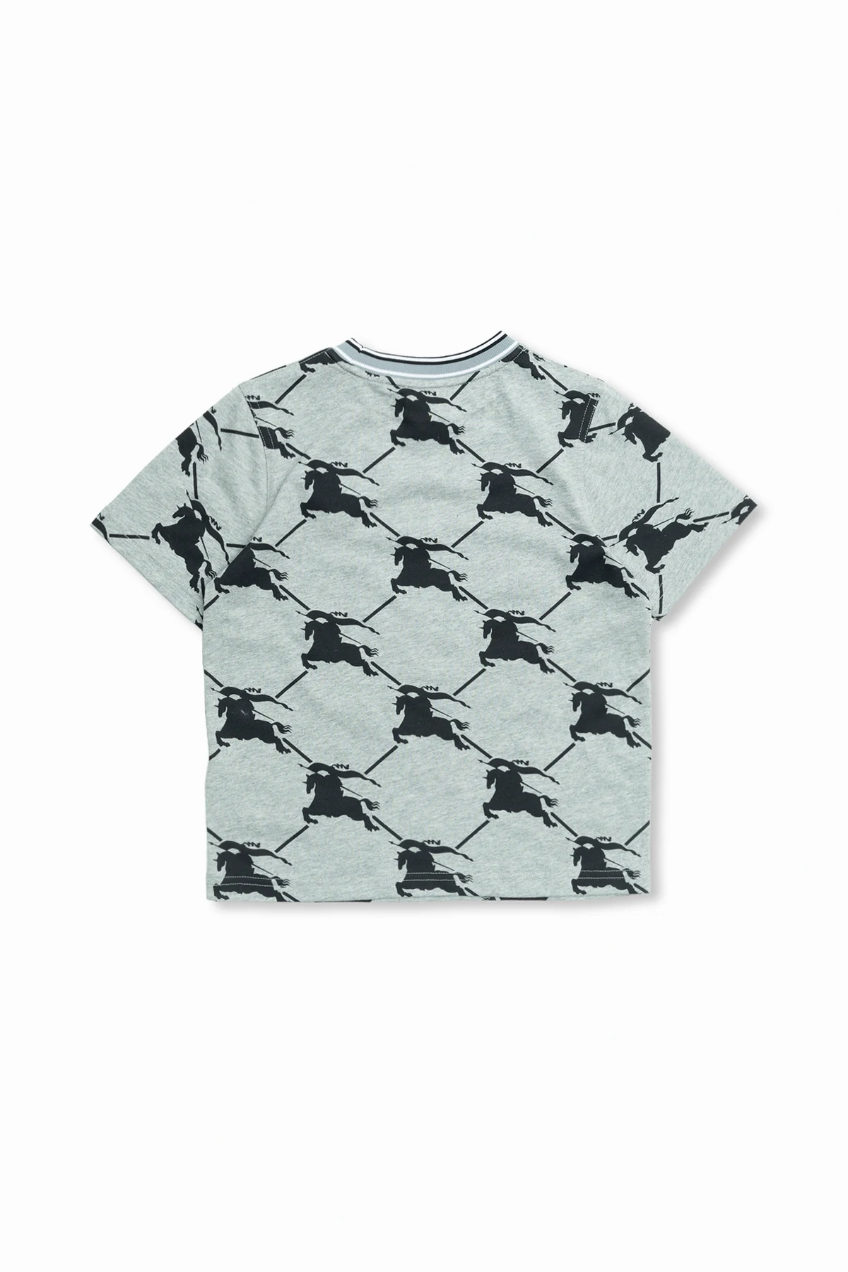 Szary t-shirt, model ‘Alexander’ Burberry Kids. Wykonany z bawełny. Ozdobiony czarnym wzorem z monogramem. Okrągły dekolt wykończony ściągaczem. Krótkie rękawy.