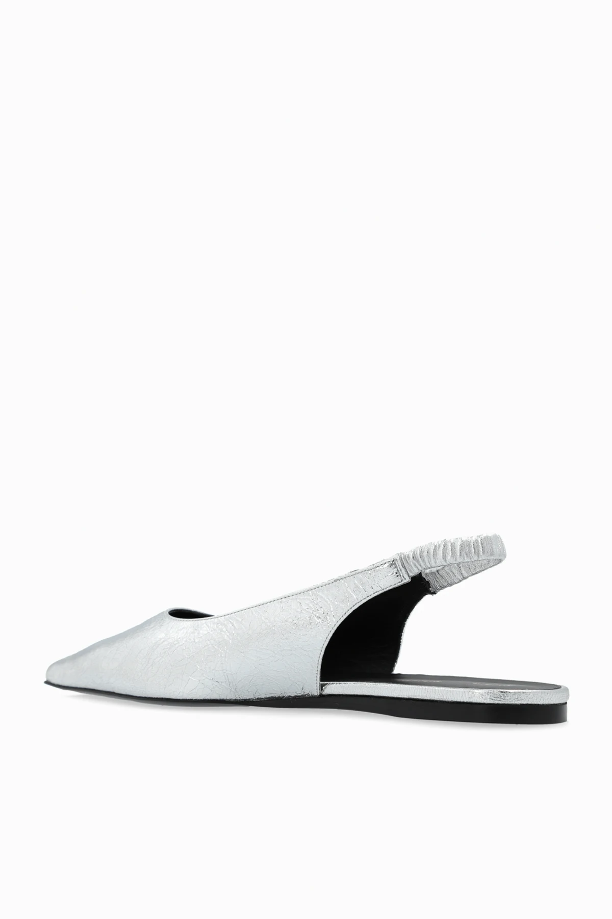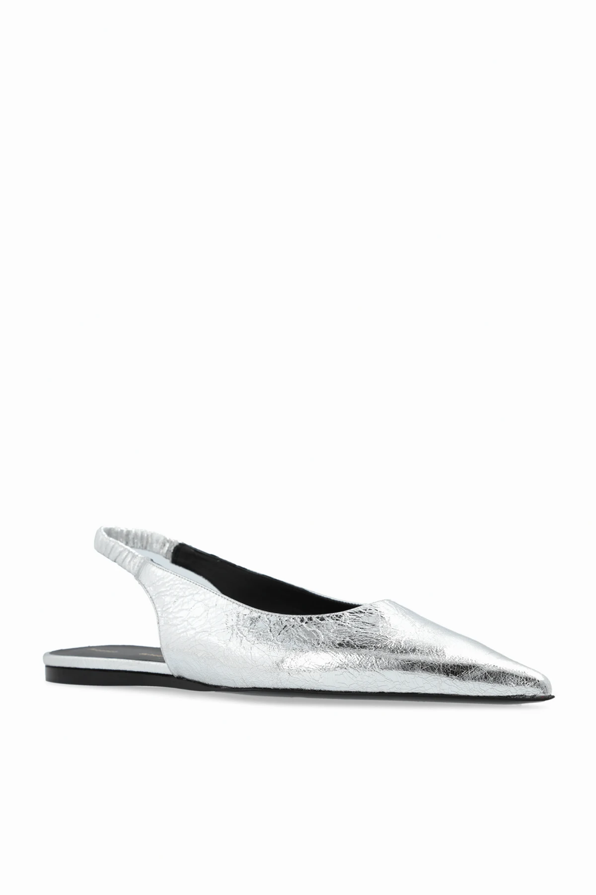 Wykonane z niezwykłą precyzją, 100% skóra o metalicznym wykończeniu nadaje im luksusowego charakteru. Srebrny kolor, w połączeniu z ostro zakończonym czubkiem, tworzy niepowtarzalny, stylowy element w każdej stylizacji. Delikatny, tłoczony wzór dodaje subtelnej faktury, podkreślając wyjątkowość tych butów. Komfort noszenia zapewnia niski, płaski obcas oraz elastyczna opaska na pięcie, dzięki której buty idealnie dopasowują się do stopy.