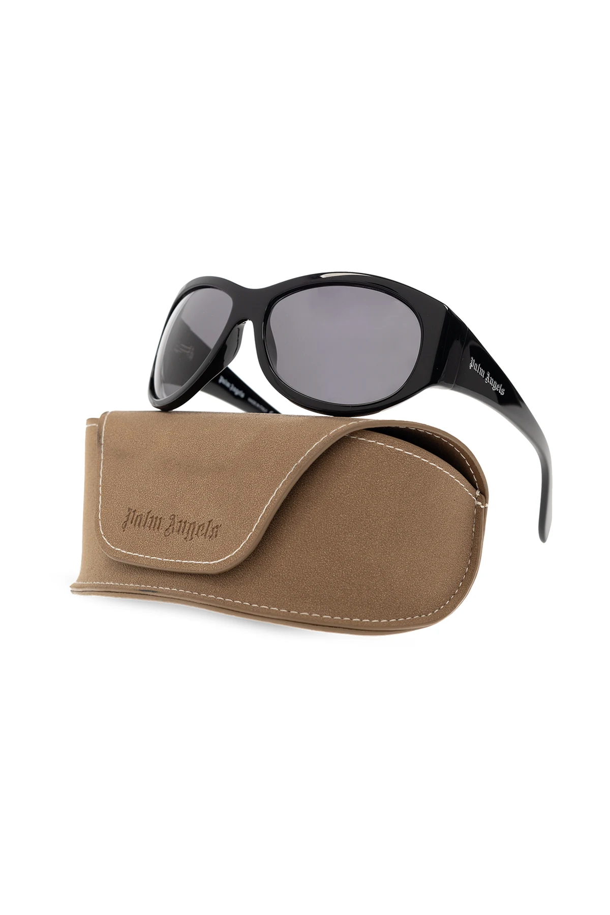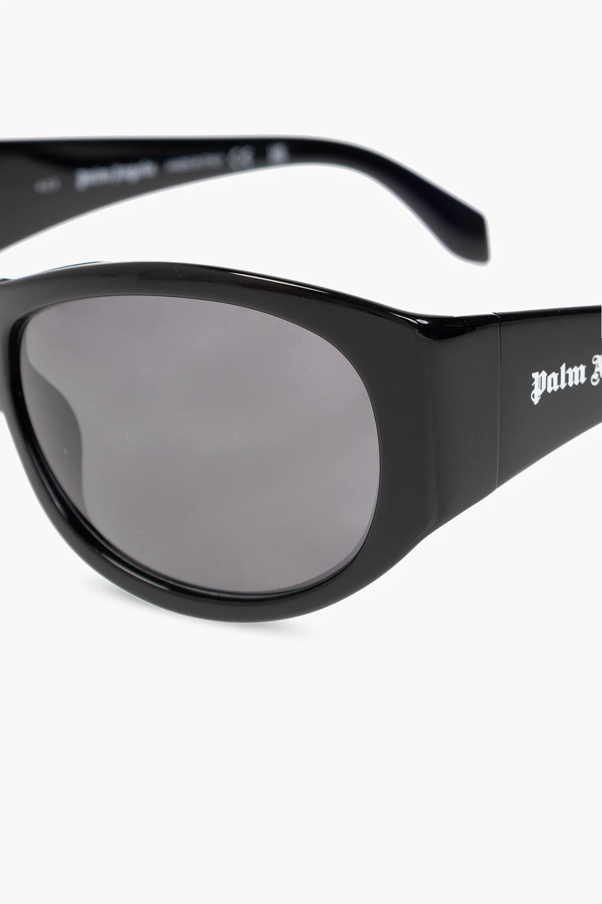 Czarne okulary przeciwsłoneczne, model ‘Gridley’ Palm Angels. Zauszniki ozdobione logo w kolorze srebrnym. Szare soczewki ze 100% ochroną przed promieniowaniem UV. Dołączone etui.