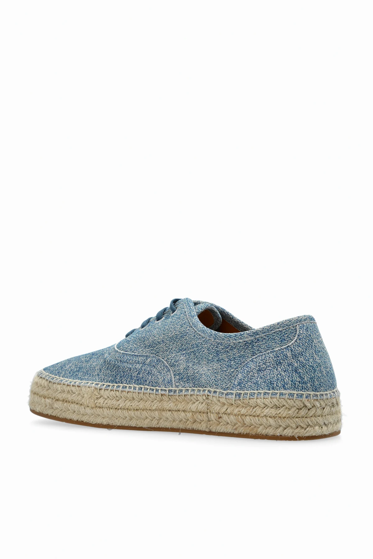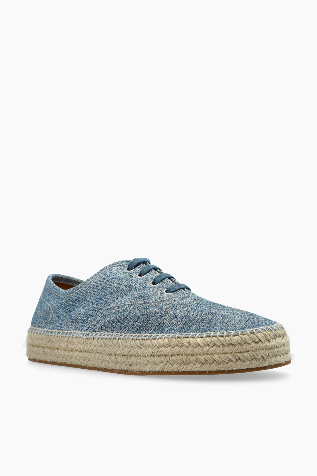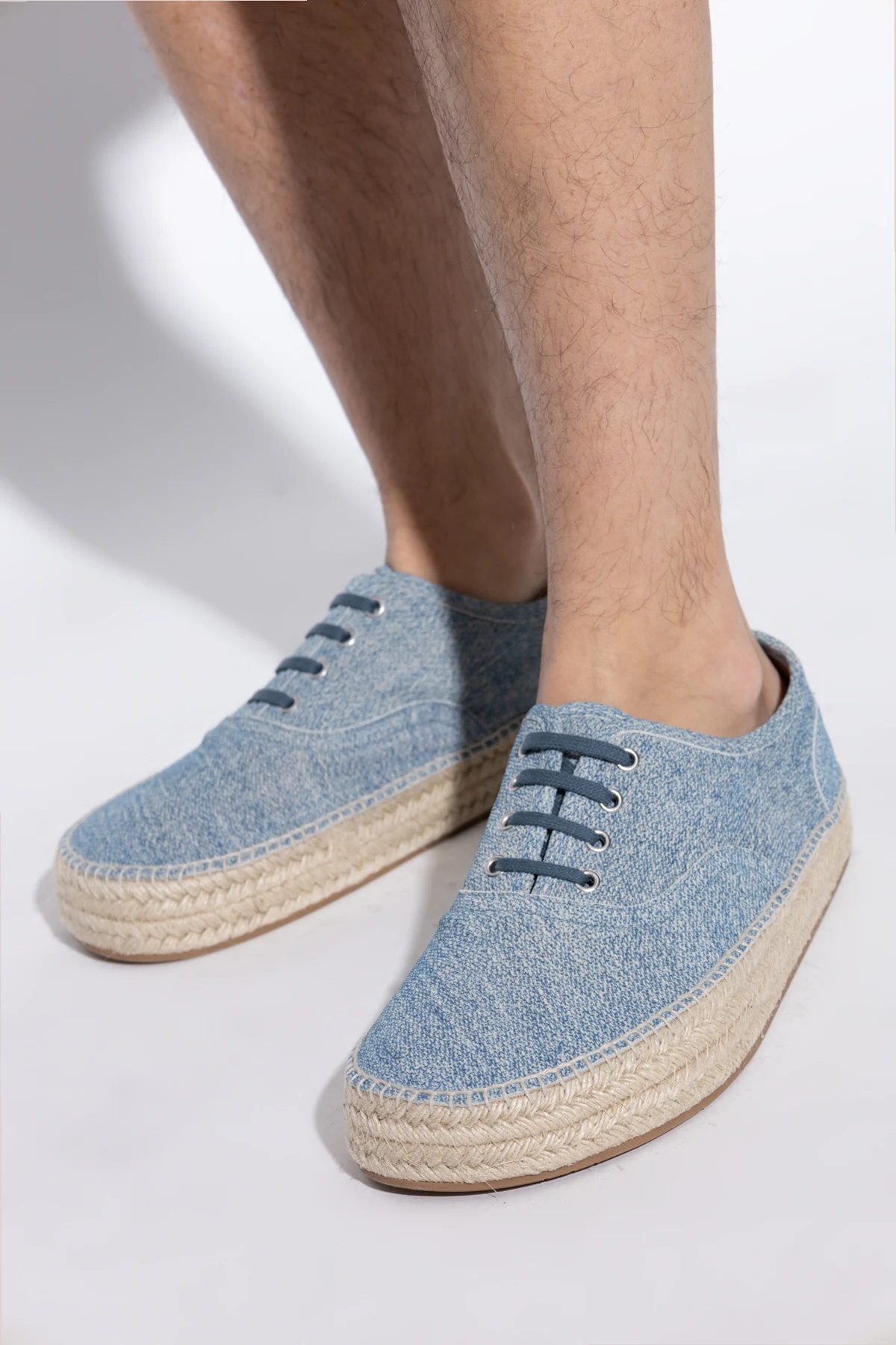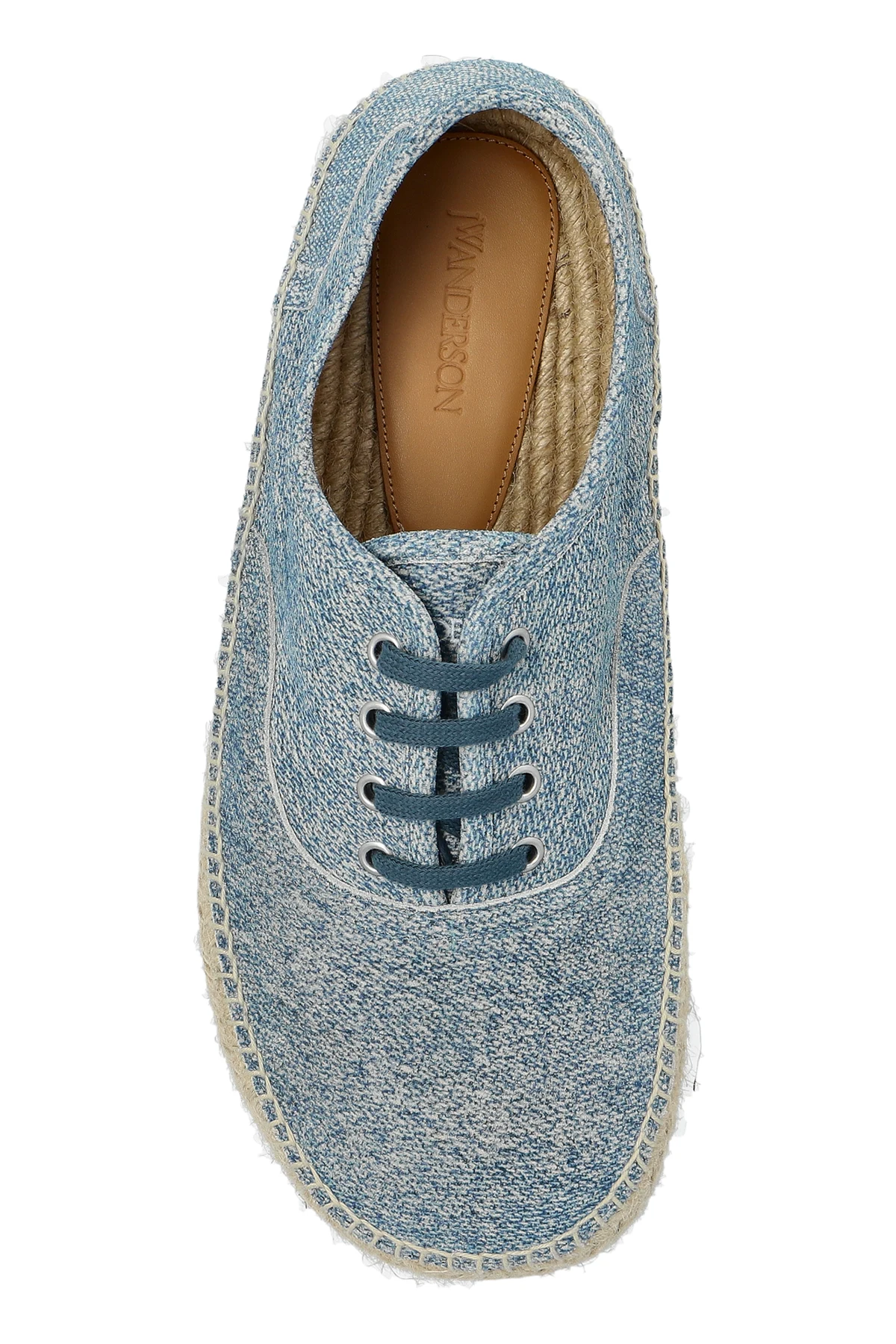 Odkryj niebieskie espadryle o niezrównanej estetyce, projektowane przez JW Anderson - ikonę współczesnego designu. Wykonane z materiału przypominającego jeans, te buty harmonijnie łączą casualowy styl z elegancją, stanowiąc doskonały wybór na letnie dni.